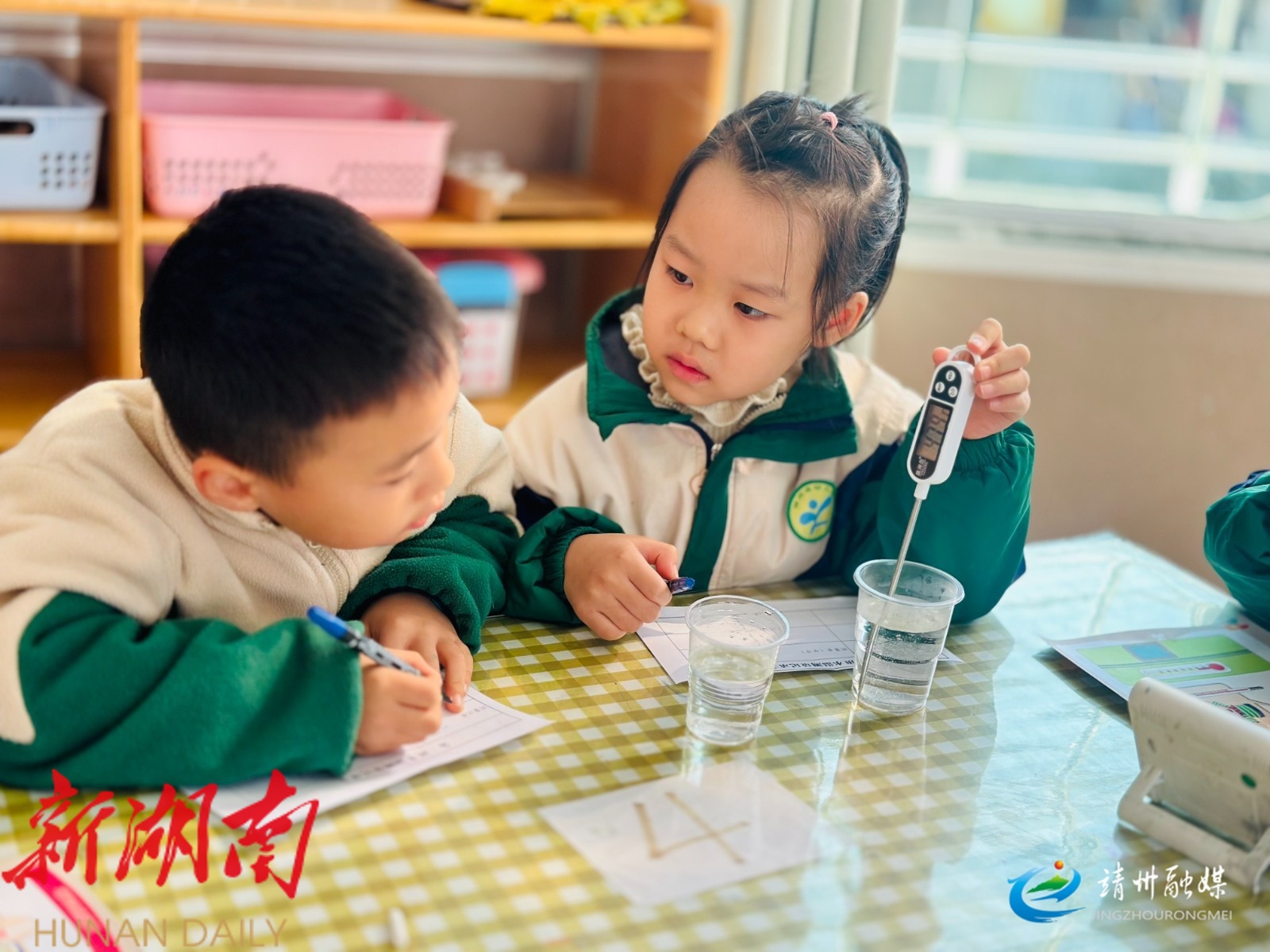 靖州融媒11月25日讯 (通讯员 孙秀兰 赵婉晴)11月25日,靖州苗族侗族自治县幼儿园开展“党建引领科学梦 小小仪器探温度”科学探究活动。