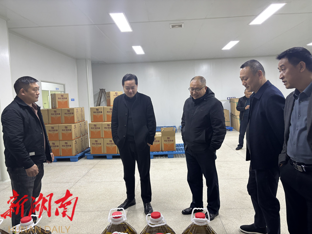 在省级林业龙头企业——新化县梅山农产品开发有限公司,县林业局负责人深入了解企业经营发展情况,进入企业生产车间、化验室和原料仓库,详细了解企业生产经营、质量控制和助农增收情况。据悉,该公司集油茶、山胡椒的种植、加工、销售、研发于一体,拥有两条自动化生产线,年产精炼茶油400吨、菜籽油300吨、山胡椒油10吨,年产值达9000余万元。企业采取“公司+合作社+基地+农户”模式,提供就业岗位60余个,与农户构建“风险共担、利益共享”的合作机制。