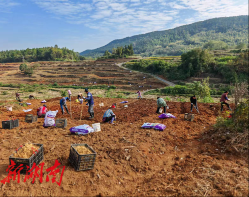 新桂阳11月26日讯(通讯员 李杭昱)昔日杂草丛生的荒山,如今已被翻垦出条条齐整的田垄。近日,桂阳县太和镇溪口村返乡致富能人吴二成带头发展的玉竹种植产业,正处于集中播种的关键时期。