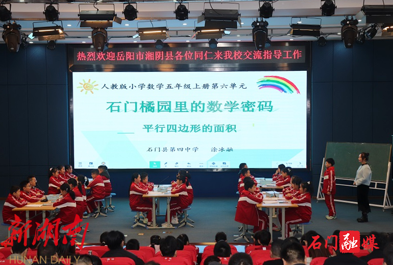 课堂是教育教学的核心阵地,也是此次研修的重点观摩内容。研修过程中,小学数学教师涂冰融带来了展示课《石门橘园里的数学密码 —— 平行四边形的面积》。课堂上,涂老师以石门特色橘园为教学情境,将平行四边形面积计算与橘园面积计算等实际场景相结合,通过动手操作、小组探究等方式引导学生自主推导公式,让抽象的数学知识变得生动鲜活,充分体现了 “生活即教育” 的理念。初中历史教师覃伟执教《敢问路在何方 —— 毛泽东开辟井冈山道路》,她将枯燥的历史知识与鲜活的案例相结合,带领学生穿越历史长河,让在场学员深刻感受到历史课堂的独特魅力。两堂展示课各具特色,充分展现了石门四中教师扎实的教学功底和先进的教学理念。
