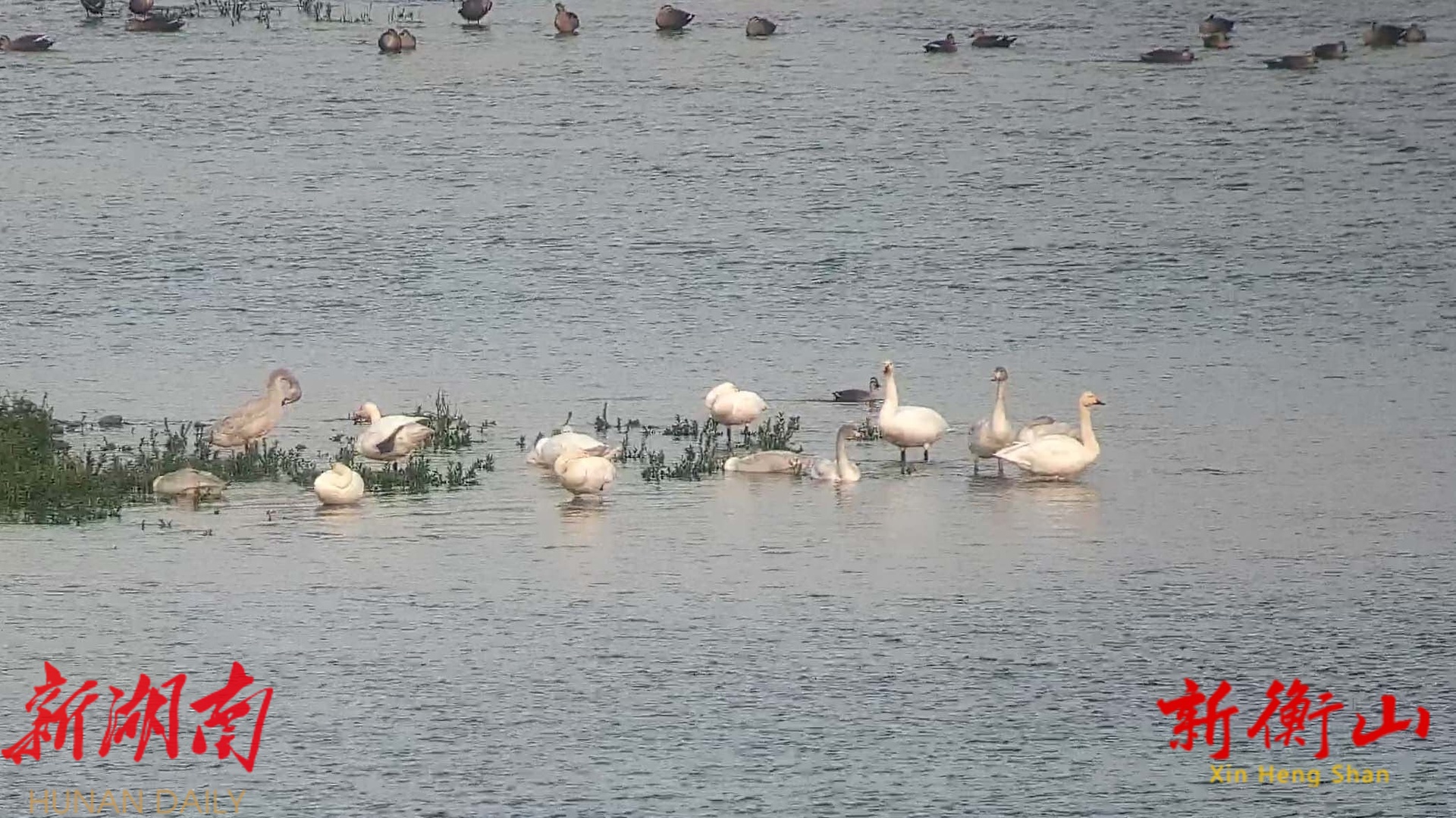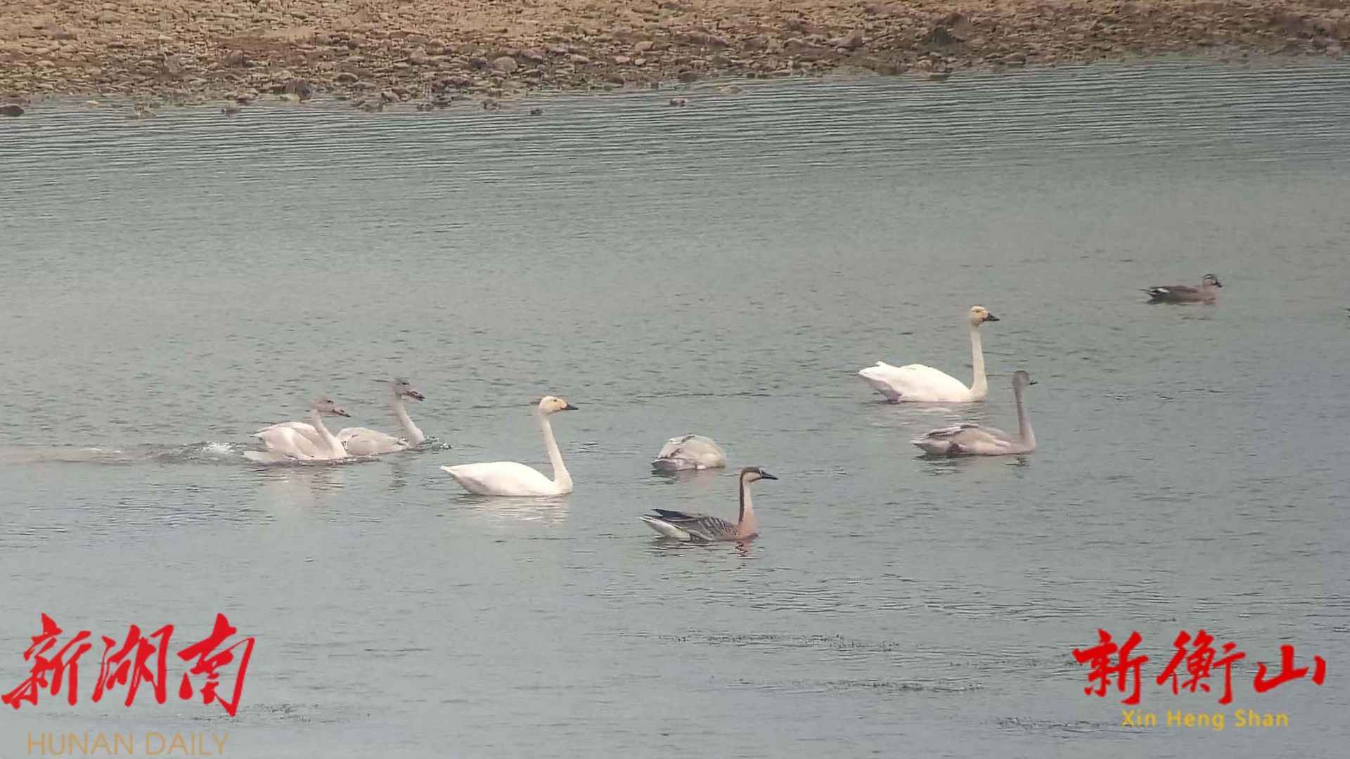 新衡山客户端11月27日讯(记者:赵诗 向微 蒋鹏 通讯员:赵娉)眼下正值北方候鸟大规模南迁的黄金时节,湖南衡山萱洲国家湿地公园迎来了大批迁徙“客人”。小天鹅、中华秋沙鸭、灰鹤等珍稀候鸟纷纷在此停歇、觅食、越冬,为冬日的湿地增添了灵动生机,勾勒出一幅“鸟栖湿地、生态和谐”的冬日图景。