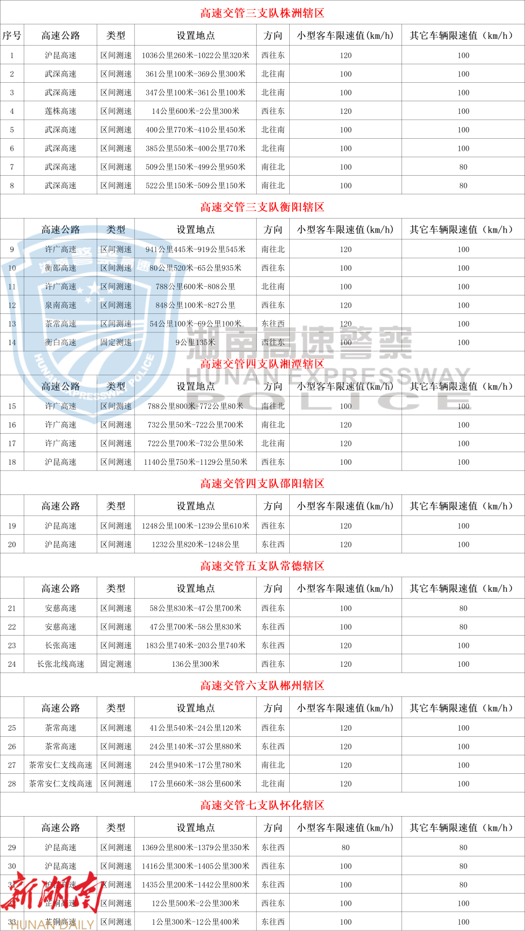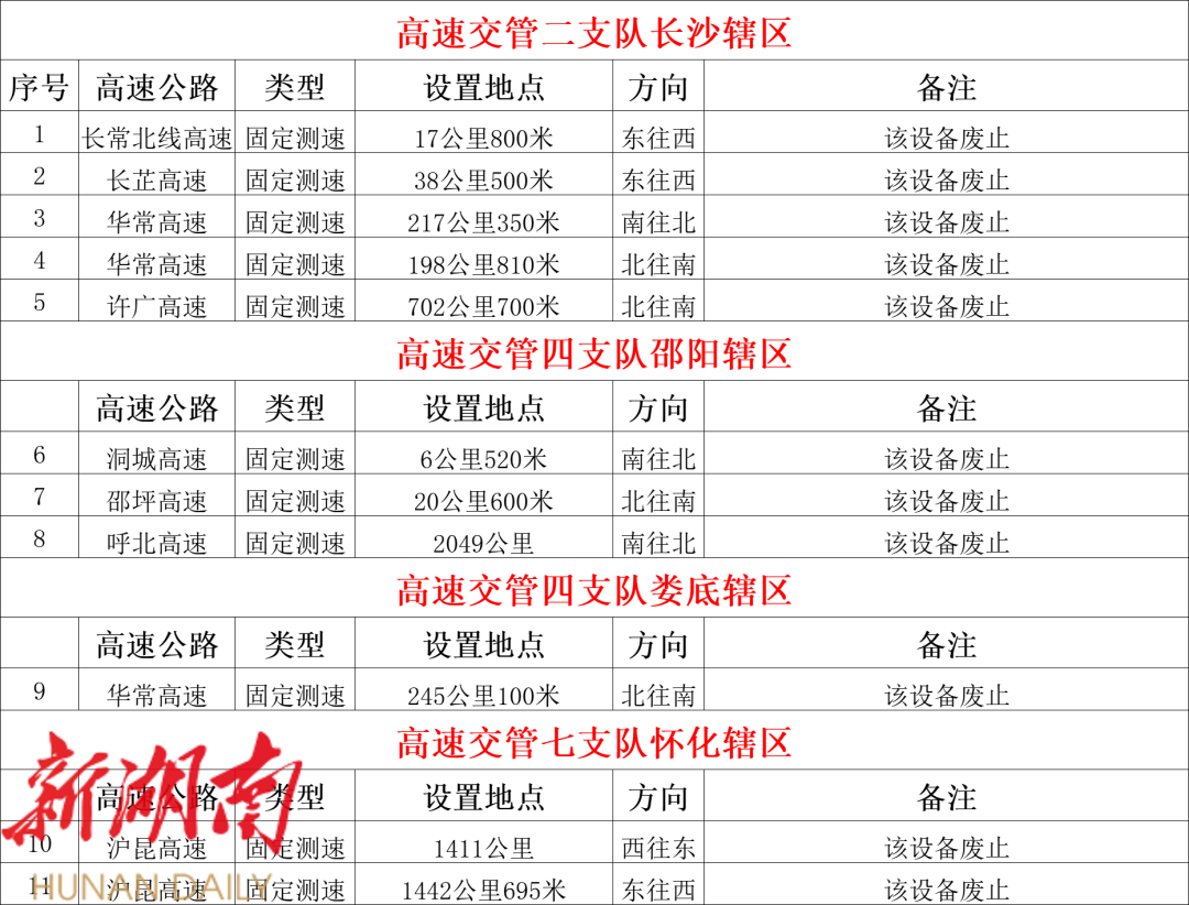 湖南省高速公路新启用33处、停止使用11处测速点位的公示!
