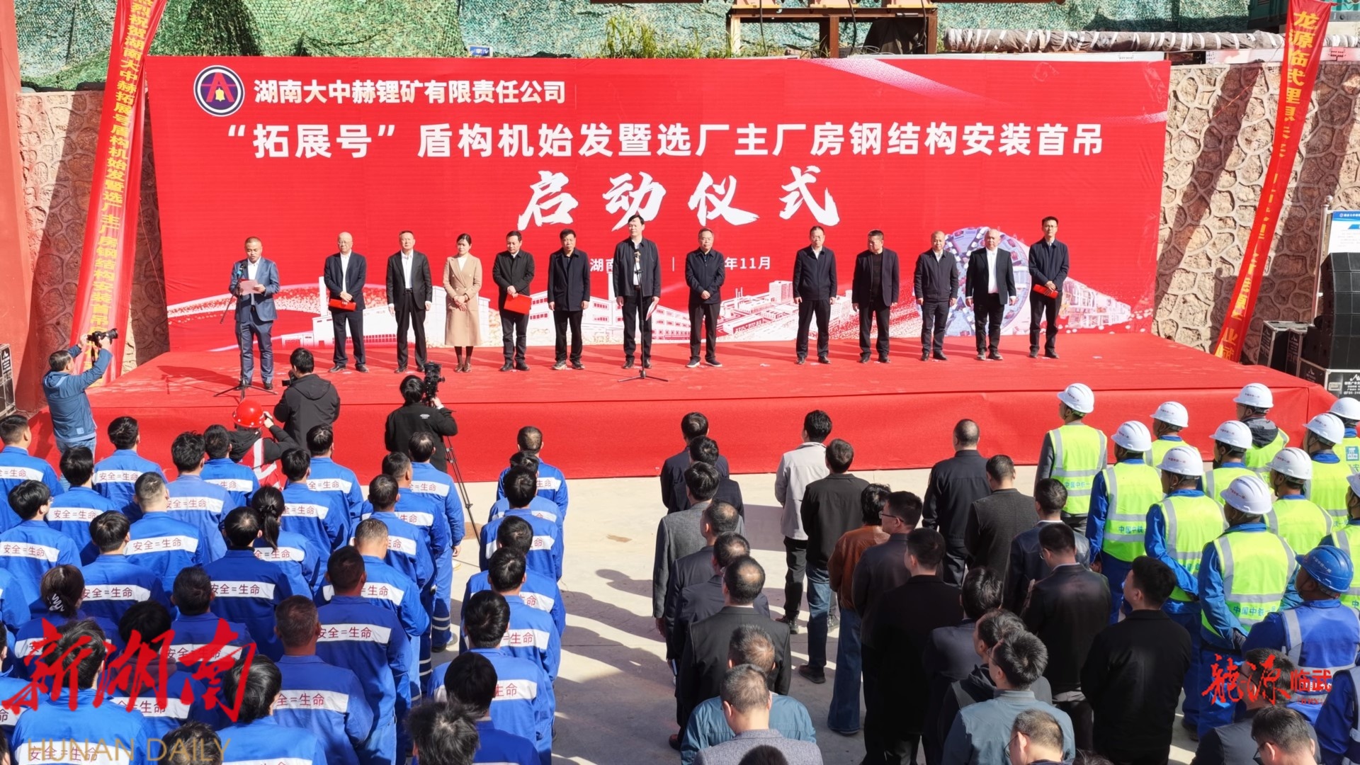 湖南大中赫锂矿有限责任公司举行“拓展号”盾构机始发暨选厂主厂房钢结构安装启动仪式