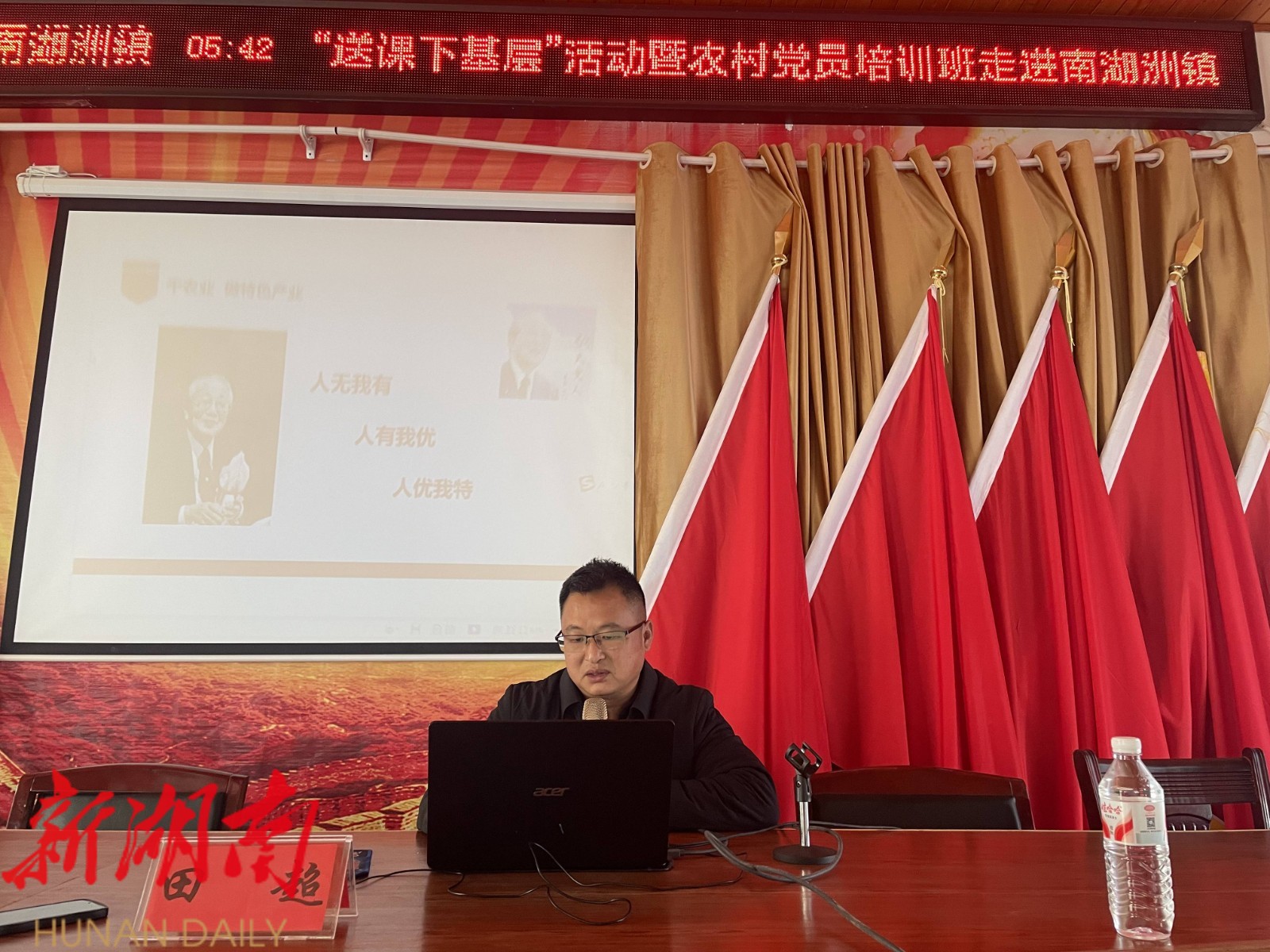 湖南日报·新湖南客户端11月27日讯(通讯员 李娜 吴博 )11月27日,湘阴县南湖洲镇东方红村党员活动室内座无虚席,一场热热闹闹的“送课下基层”活动正在进行中。此次活动特邀湖南洞庭美农业科技集团总经理田超、湘阴县杨林寨乡人民政府副乡长孙梓健两位讲师现场授课,为基层党员群众送上一堂接地气、真扎实的“赋能党课”。