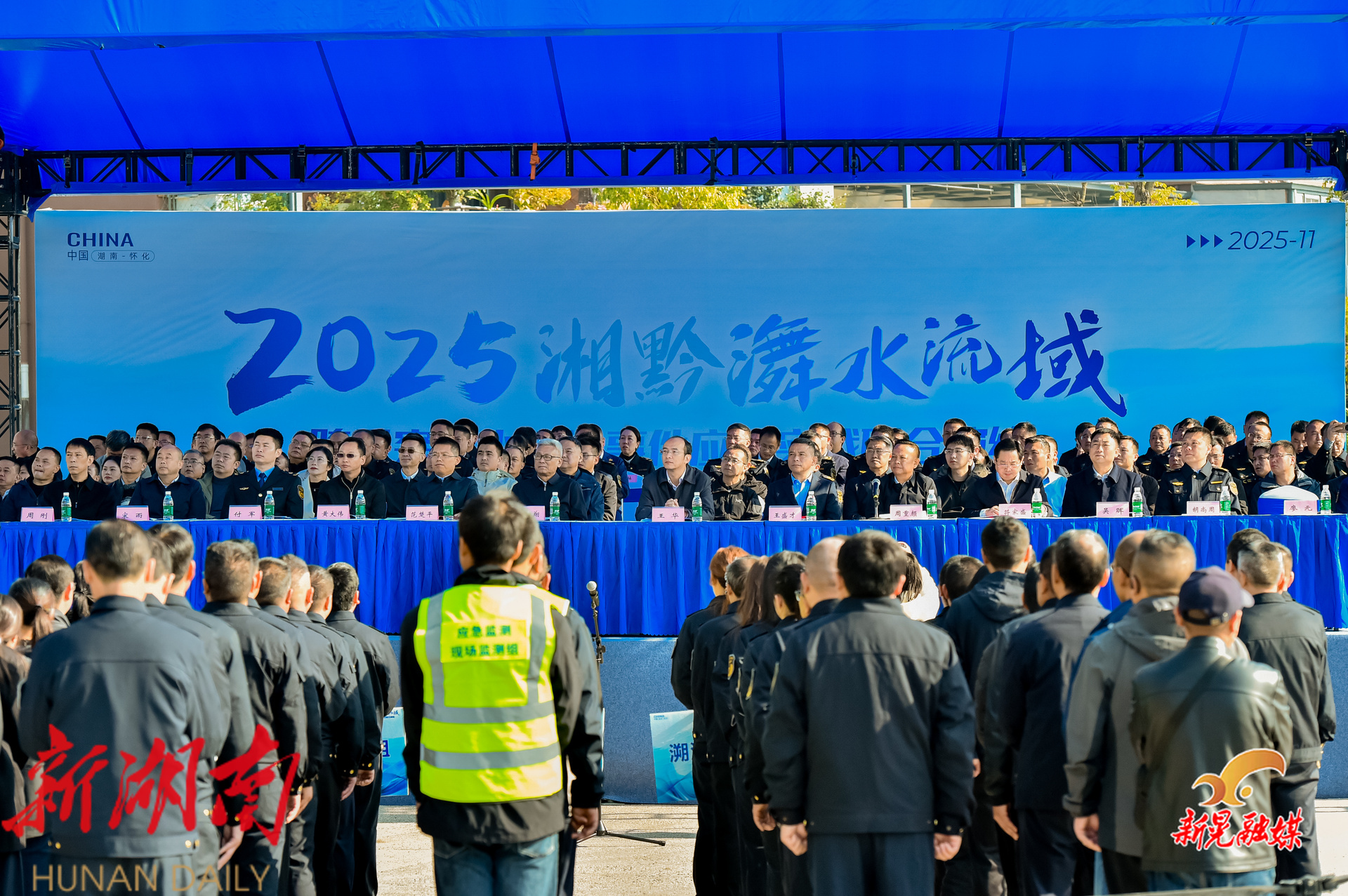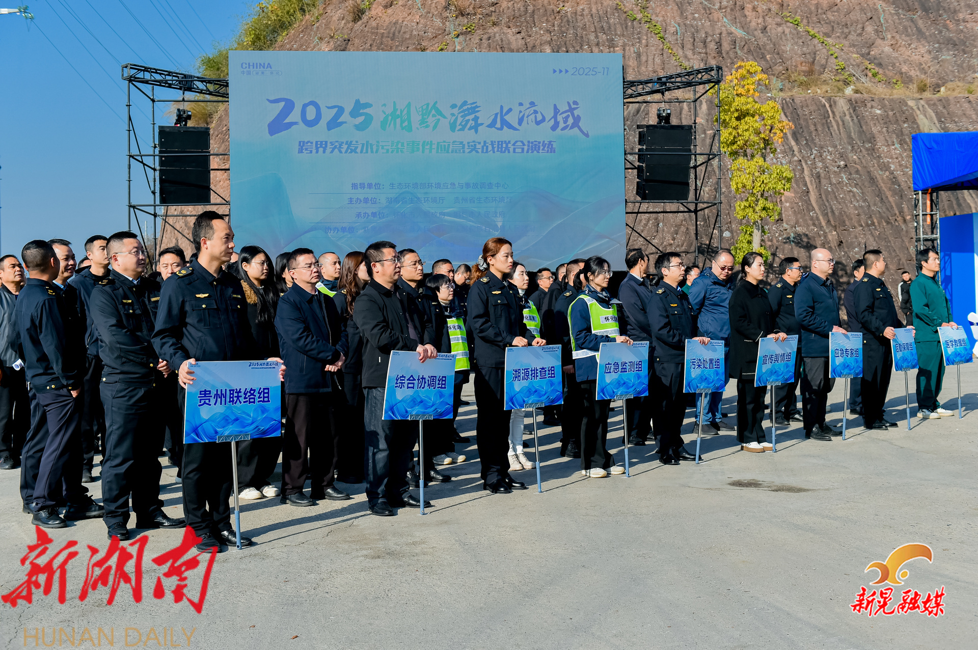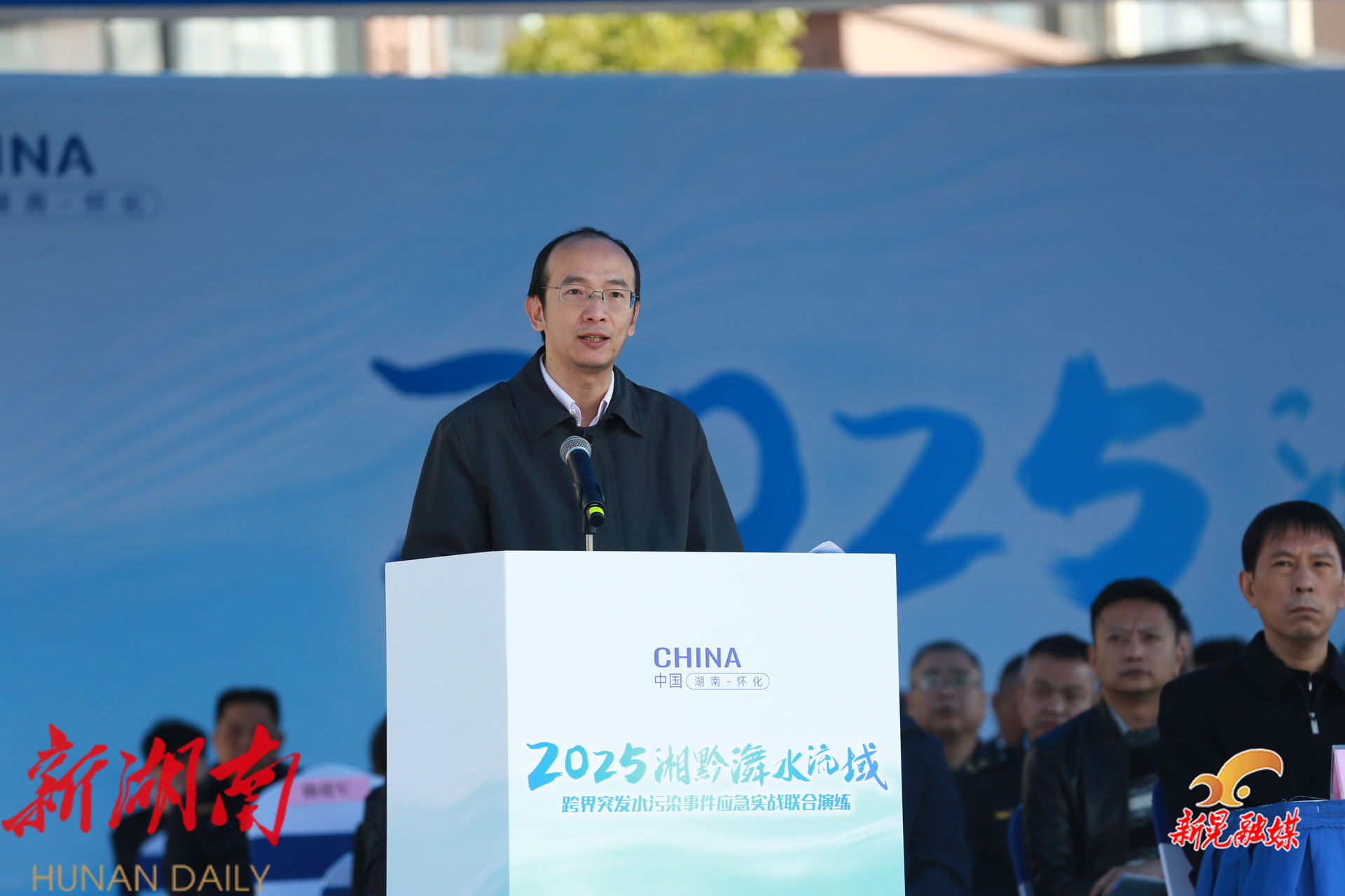 新晃融媒11月27日讯(记者 甘胜男 向勇嘉)11月27日,2025年湘黔㵲水流域跨界突发水污染事件应急实战联合演练在我县举行。演练由湖南省生态环境厅、贵州省生态环境厅联合主办,怀化市与铜仁市人民政府共同承办。生态环境部应急办应急六处处长王华、湖南省生态环境厅副厅长王盛才、贵州省生态环境厅副厅长罗鸿翔、怀化市副市长周重颜、铜仁市副市长范楚平、县委书记符家盛等参加。江西、湖北、广东、广西、重庆等周边省(区、市)生态环境部门负责同志到场观摩。