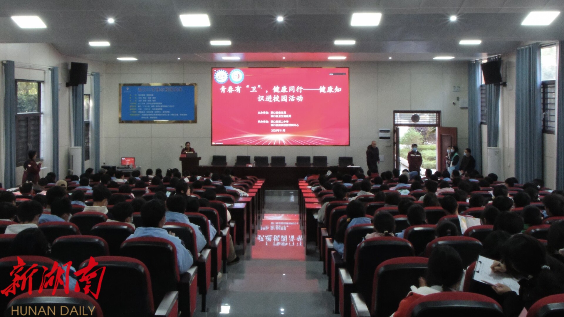 洞口融媒11月28日讯(记者:邓贝乐) 11月27日,洞口县疾控中心健康宣讲团走进洞口县第二中学,开展以“青春有‘卫’,健康同行”为主题的健康知识宣讲活动,旨在提升师生健康认知与重视程度,树立科学健康理念,筑牢校园健康防线。