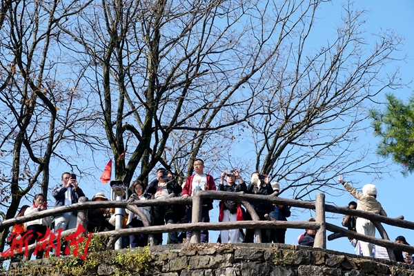 天子山仙女散花观景台是当日热门打卡点,快门声与赞叹声此起彼伏。“我去年在这里见到了烟雨仙境,这次特意选择天气晴朗的日子重游。”上海游客李女士举起相机记录眼前美景,感慨晴好天气让视野格外开阔,群峰尽收眼底。