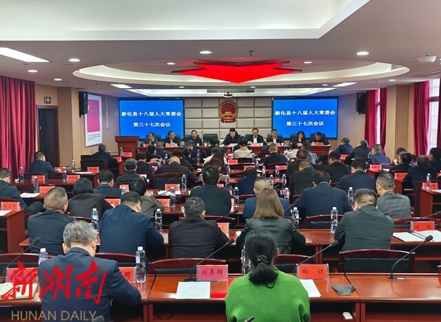 湖南日报·新湖南客户端11月28日讯(通讯员 游进 刘文)11月26日,新化县第十八届人大常委会召开第三十七次会议。县委副书记、代县长邹剑锋列席会议并讲话。县人大常委会主任杨韶红主持会议。县人大常委会副主任曾令斌、曾欣华、曾朝辉、朱吉良、钟英姿及常委会委员出席会议。县委常委、常务副县长陈国聪,县委常委、县纪委书记、县监委主任朱锋,副县长李燕,县政协副主席罗忠庆,县人民法院院长刘湘林,县人民检察院检察长刘誉荣等列席会议。