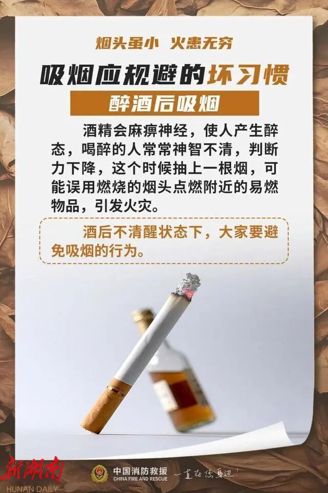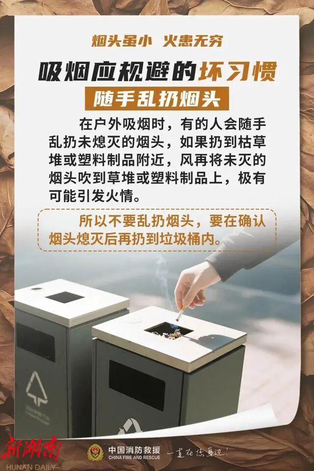 2025年2月28日凌晨1时26分,湖南张家界市永定区某公司宿舍的一处杂物间发生火灾,造成1人不幸身亡。火灾原因为烟头引燃周围可燃物,进而引发火势蔓延。