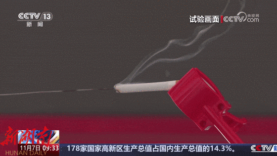 试验显示,烟头燃烧的点位,离提前放置的感温触点越来越近,温度上升的速度也是越来越快,最高温度已经达到了700多摄氏度。