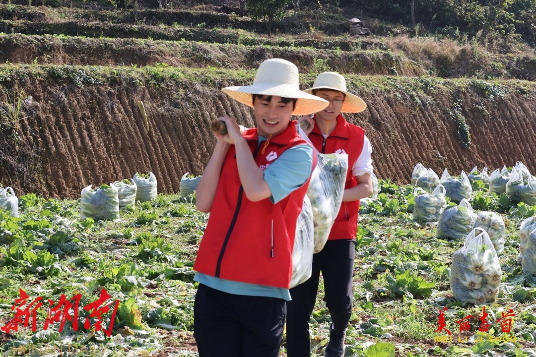 吉首市融媒体中心11月28日讯(通讯员 李虹) 11月27日16时30分,吉首市石家冲街道曙光村的白菜地里,最后一捆白菜被稳稳装上三轮车。种植大户李萍攥着水电八局青年志愿者的手,声音哽咽又欣喜:“这一万斤白菜保住了!你们真是及时雨!”