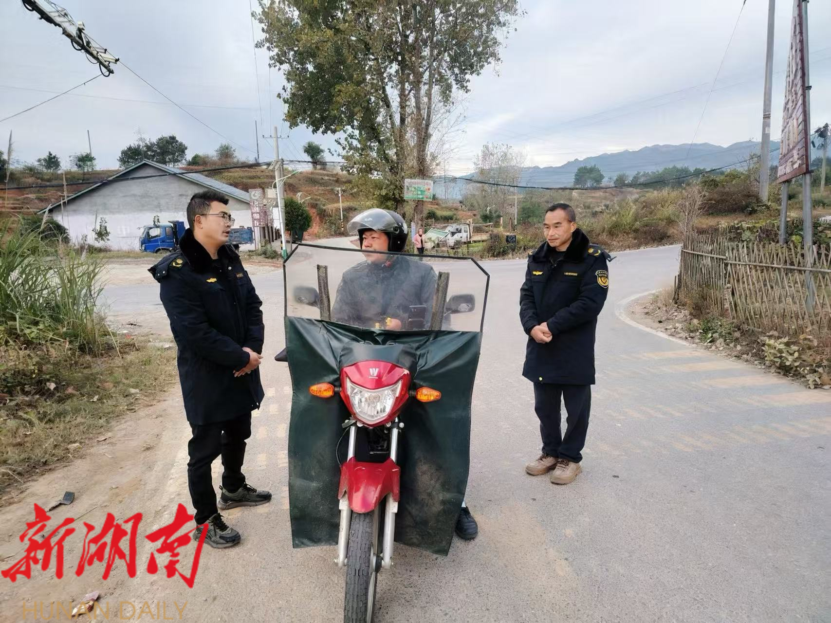 中方融媒11月28日讯 (通讯员:储芸蔚)“师傅,骑乘摩托车、电动车一定要佩戴好安全头盔,这是对自己生命安全的负责!”11月28日,在中方县铜湾镇的集镇主干道,铜湾镇综合行政执法队工作人员拦下一辆未佩戴安全头盔的摩托车驾驶员,耐心地进行劝导。