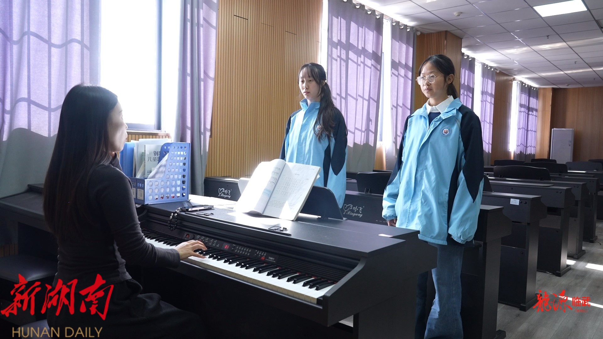 一大早,临武县职业中专的音乐教室里就传来了悠扬的钢琴声。曹美兰正带领学生练习发声,大家围坐琴旁,沉浸在音乐的世界中。每天送完孩子上学,她便匆匆赶到学校,把热情投入到教学与备赛中。由于排练时间紧张,她只能利用课间、午休等碎片时间,一遍遍练习参赛曲目。