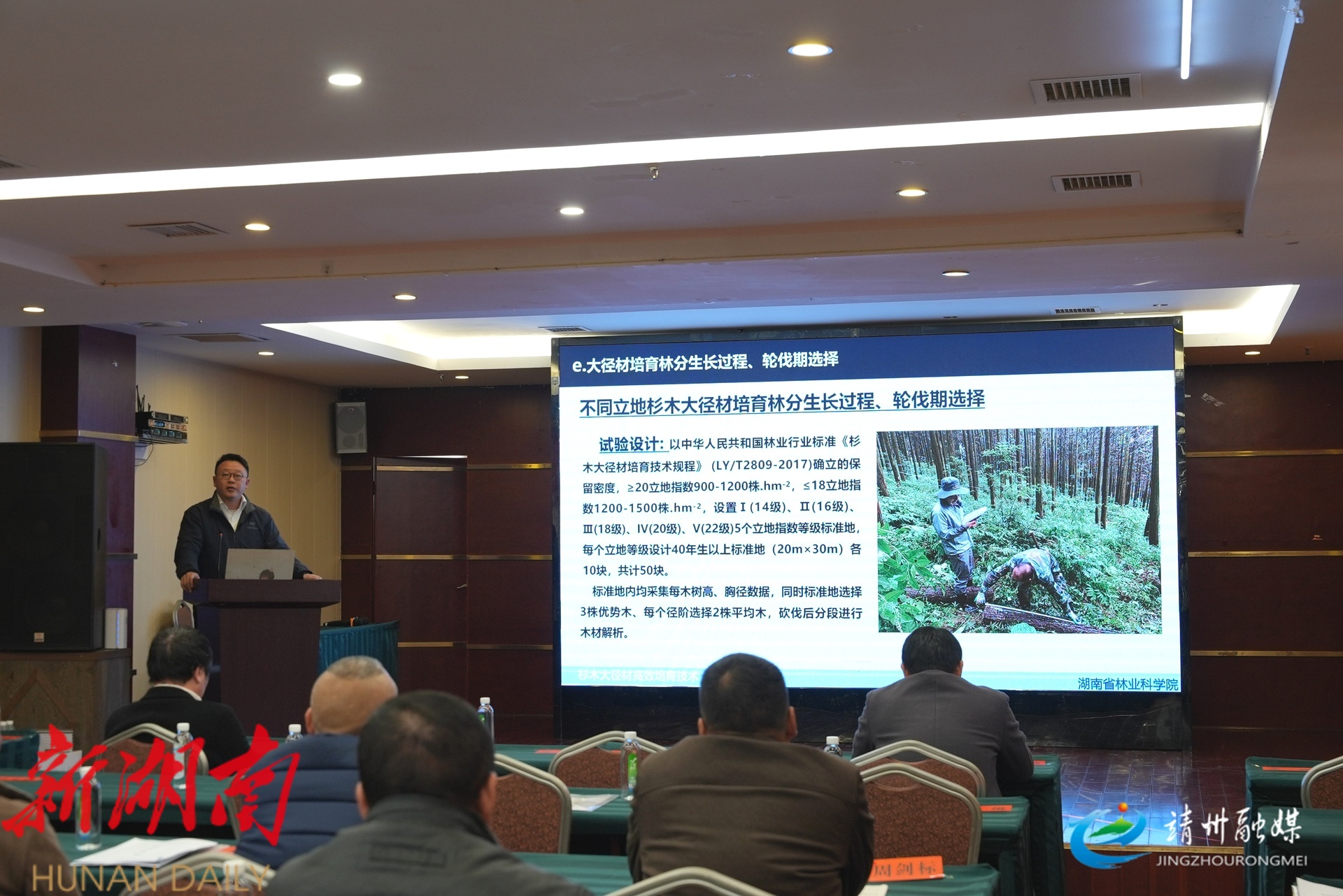 湖南省林业科学院研究员张勰围绕“杉木大径材高效培育技术”作专题授课(钦苏芬 摄)