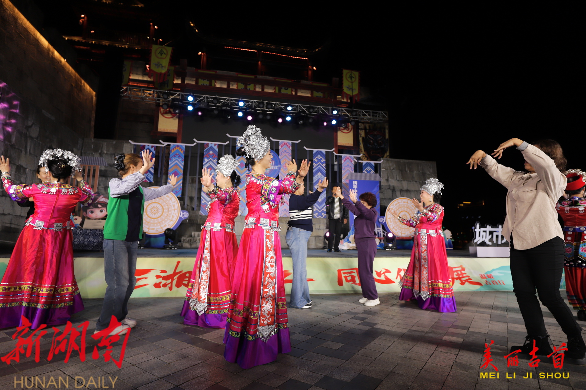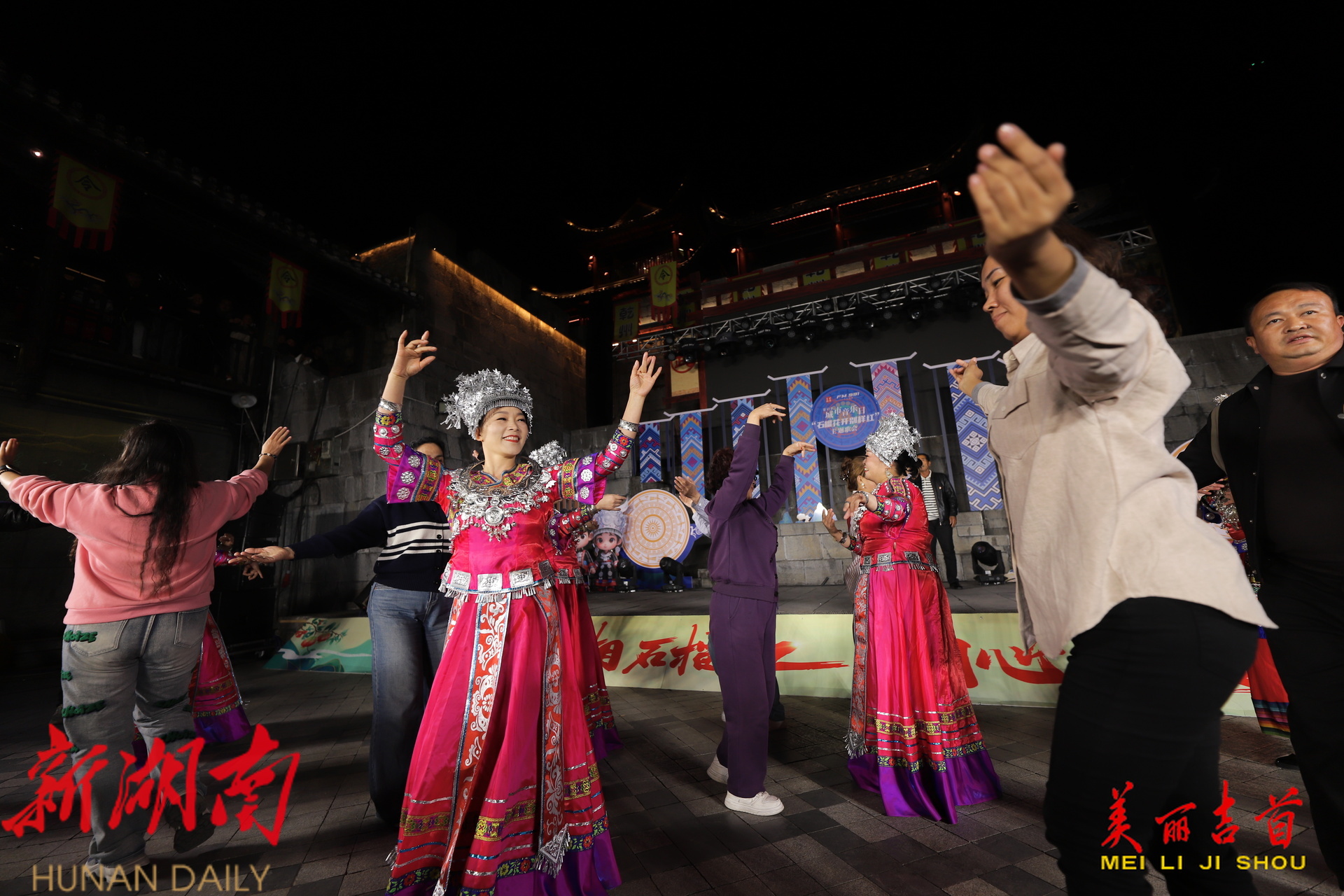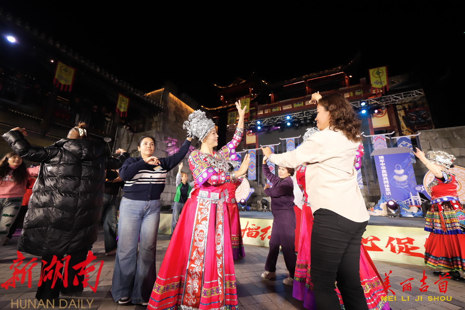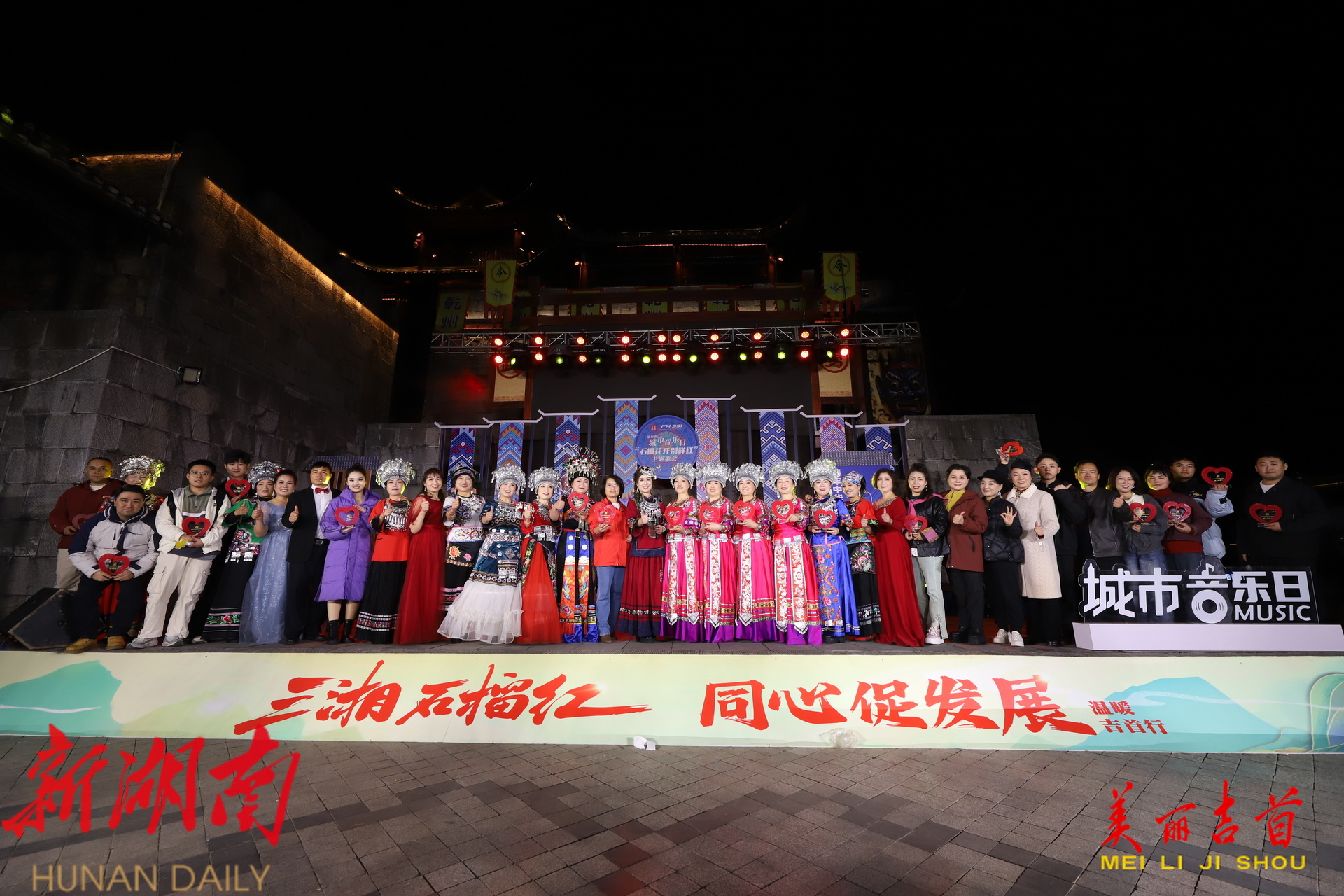 吉首市融媒体中心11月28日讯(全媒体记者 田鹏 张远思 王卓 彭璟 段锦仪)11月28日晚,“石榴花开别样红”城市音乐日主题歌会在吉首市乾州古城温暖开唱。歌会以“三湘石榴红 同心促发展”为主题,用悠扬旋律串联民族情谊,以深情歌声传递发展力量。