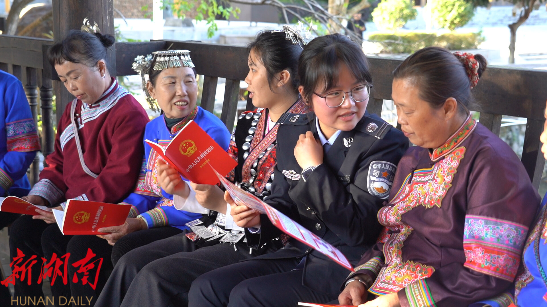 据悉,靖州精选《中华人民共和国民法典》《靖州苗族侗族自治县传统村落保护条例》等7部与群众生产生活密切相关的法律法规,编制双语宣传视频和侗族歌谣,依托基层立法联系点全年开展双语普法、歌会宣法200余场,推动法治宣传从“单向灌输”变为“双向互动”,让尊法学法守法用法成为苗乡侗寨群众的自觉行动。