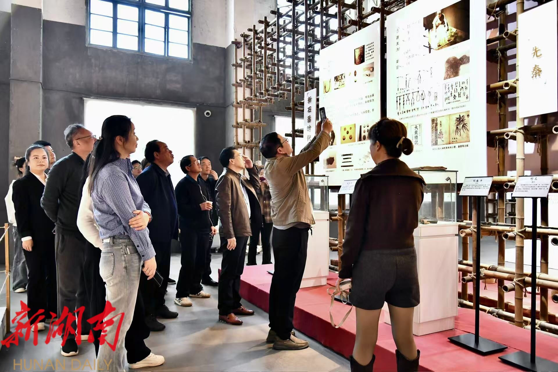 从窑火不熄的岳州窑传习所,到经纬交织的苎麻文化馆,采风团以脚步丈量,完成了一场跨越千年的文明对话。在岳州窑烧制技艺传习所,传承人陈灿宇的指尖正唤醒旋转的陶泥。这里是活态传承岳州窑文化的重要基地,教学、创作与体验在此交融,让千年窑火在当代依然发光发热。步入中麻苎麻博物馆,6800根红竹与垂悬麻幕以无声的语言,讲述着人类使用麻纤维6800年的悠久历史。这座由旧厂房改造的苎麻文化馆,集科普、教育、体验于一体,让传统麻纺技艺焕发新生。