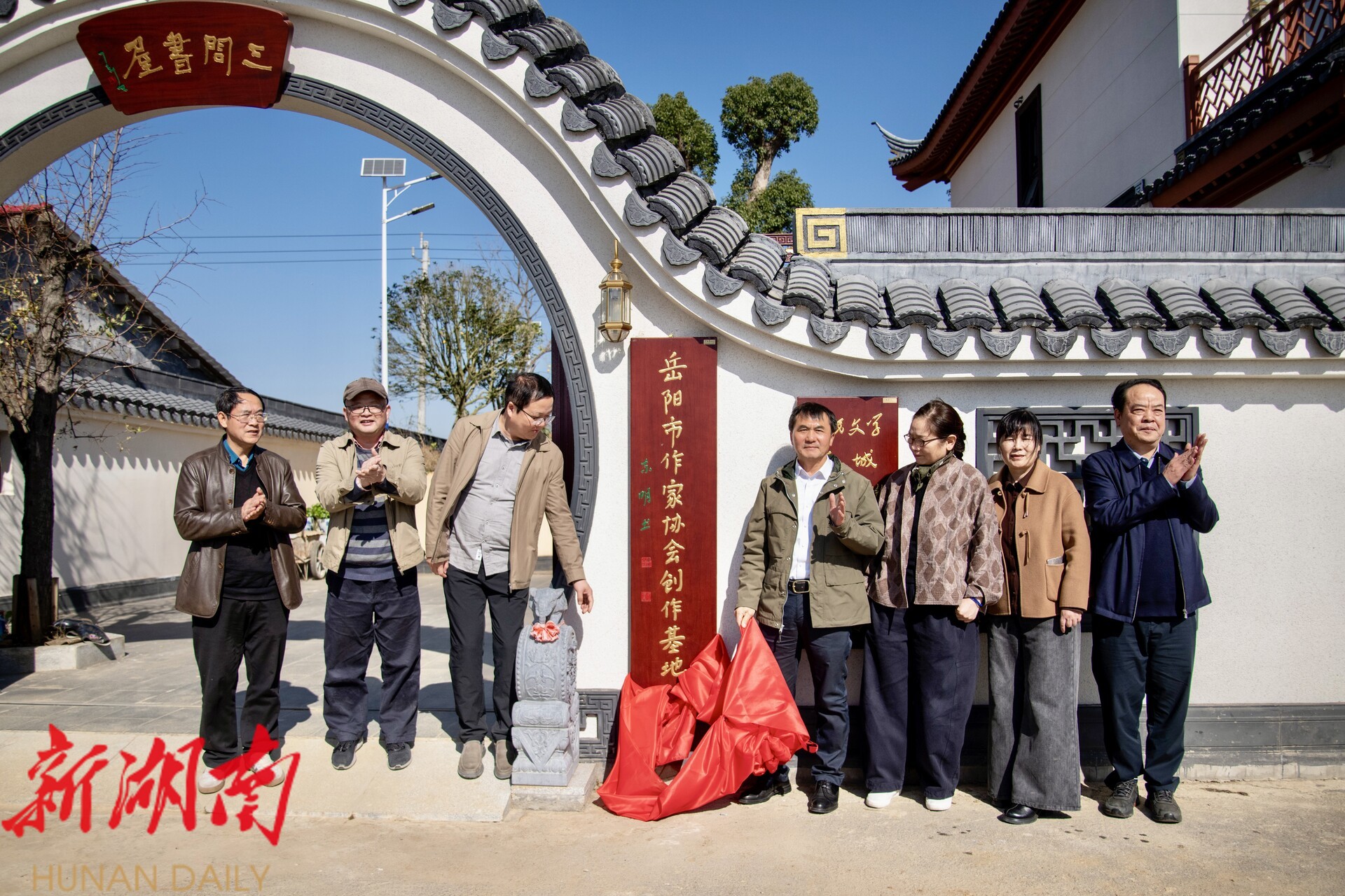 古今文脉的赓续,在湘滨镇买马村铺展出新的图景。这里既有李园洞庭湖文化研究院、南洞庭湖农家书院涵养的人文气韵,亦有新揭牌的岳阳市作家协会买马村创作基地。中国作协会员、湖南省作家协会副主席彭东明,中国作协会员、岳阳市作协主席舒文治为其揭牌,为乡村文学发展注入了强劲活力。座谈席间,采风团成员们围绕洞庭湖文化保护传承、乡村文化振兴路径等议题畅叙己见,思想碰撞间,书香墨韵与乡土烟火交融共振,凝聚起文润乡村的共识。