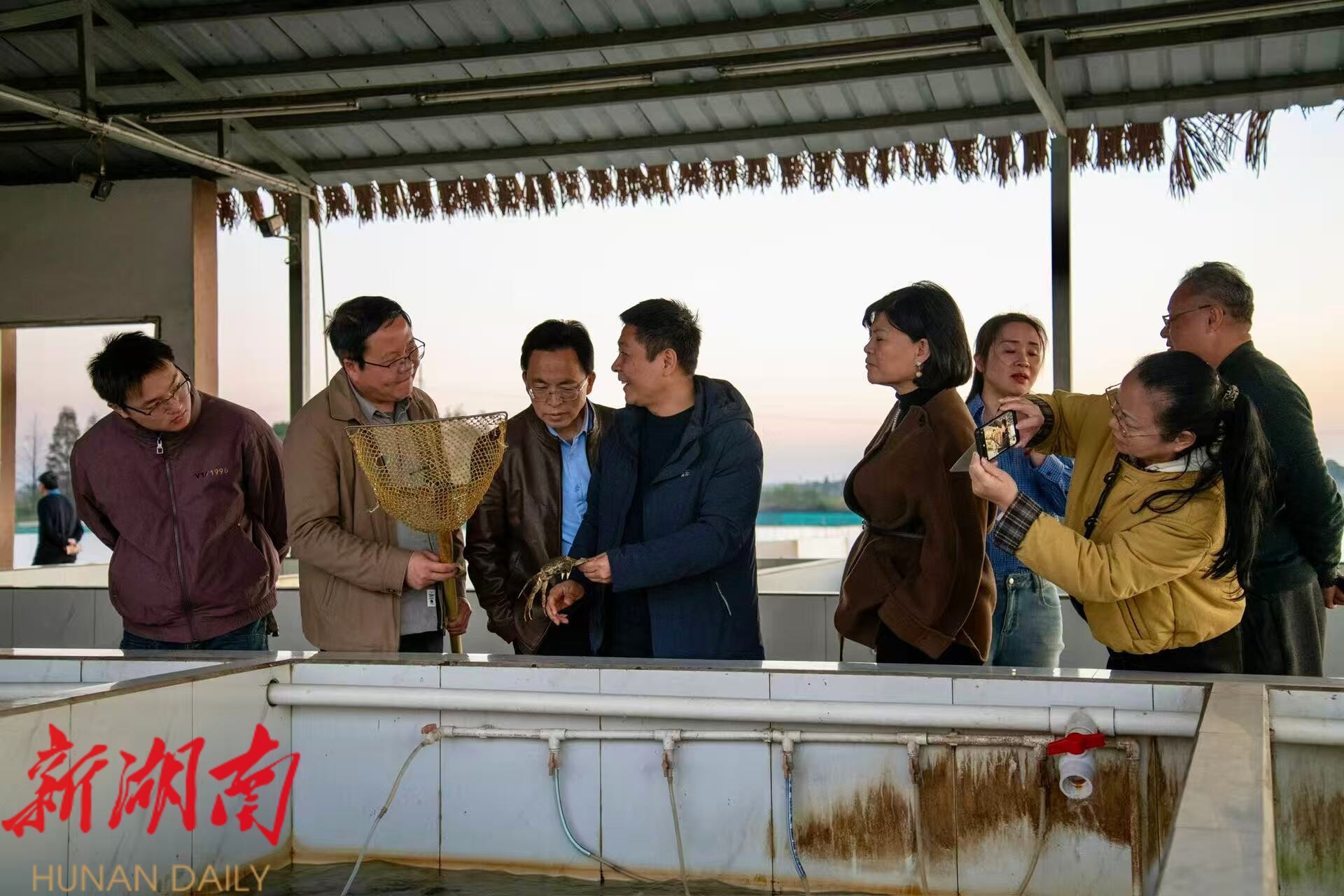 采风活动的尾声,留给了鹤龙湖镇湘水红膏蟹基地。采风团成员穿行于堤岸,实地探寻一只螃蟹如何“爬”出一条产业链。该基地总投资700万元,培育“湘水红膏蟹”,年产量达26万斤。通过线上线下双轨发力,年销售额突破700万元,真正让“一池活水”滋润了广袤乡野。