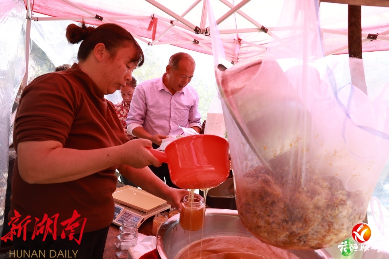 麻栗场镇文笔蜂村的村民吴菊花是第一次参与割蜜,她兴奋地说:“这蜜真甜!我买了几斤带回去给老人尝尝。”