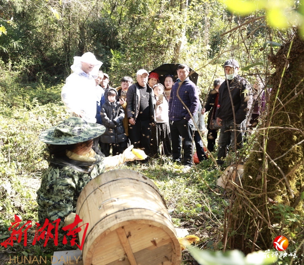 湖南日报·新湖南客户端11月30日讯(通讯员 李茜雯 邓雨露) 11月29日,冬日的阳光洒在花垣镇朝料村的乡间小路上。临近中午,村道边渐渐热闹起来,人们从四面八方赶来,只为赴一场一年一度的“甜蜜之约——清成特产养蜂合作社的百花蜜采集日。这个于2016年成立的养蜂合作社,如今已发展成为带动乡邻共同致富的特色产业。