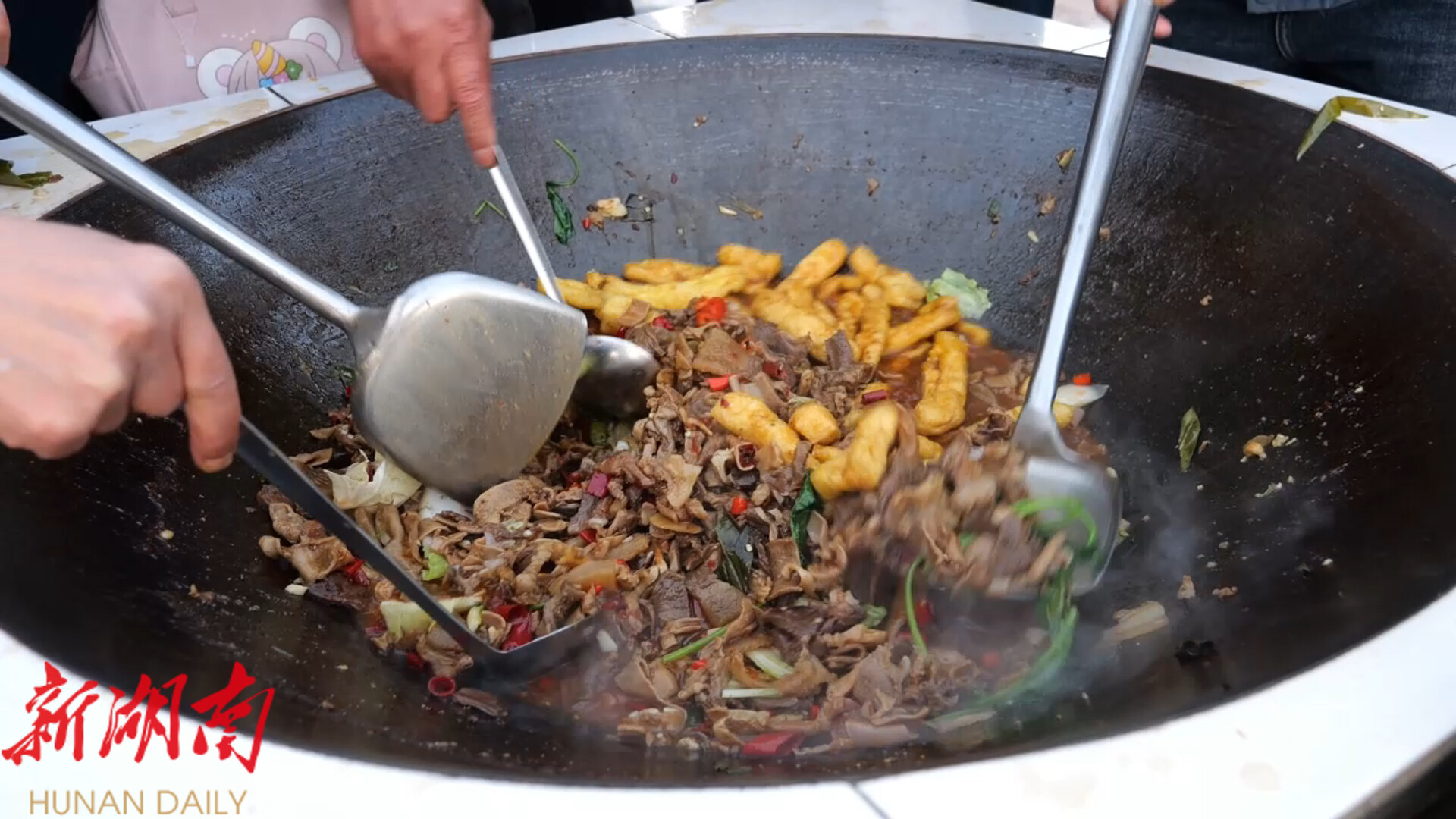 阿巴砦景区内,大厨现场烹制的三下锅、腊蹄炖萝卜、土家合渣等特色佳肴陆续端上桌,香气四溢。游客围坐共食,不时交流着沿途所见的乡村美景与民俗趣事。“跟着千人团来阿巴砦,既能吃到地道特色美食,又能感受村寨烟火气,太值了。”来自广东的游客张怡笑着说道。