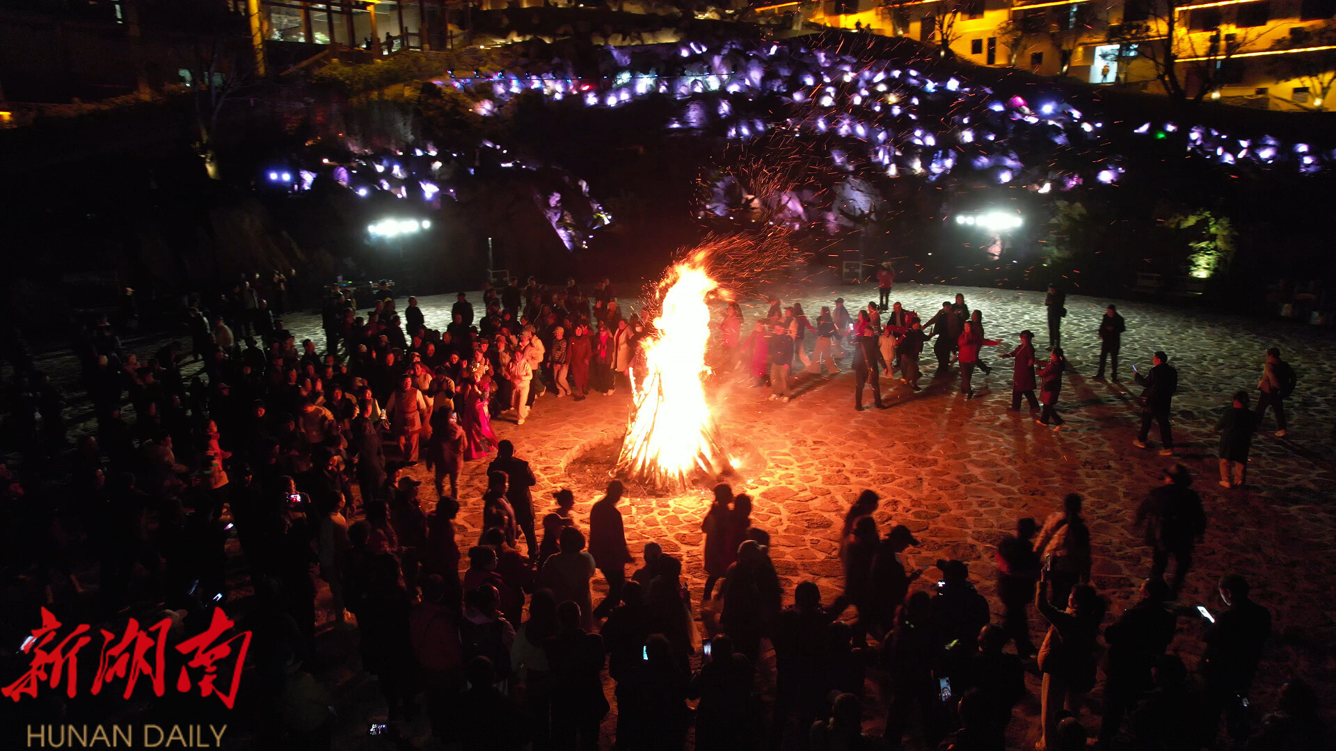 湖南日报·新湖南客户端11月30日讯(通讯员 钟彬豪)11月29日,阿巴砦景区迎来千人旅游团,夜晚篝火晚会燃情绽放,游客沉浸式体验民俗风情,感受乡村文旅融合的独特魅力。