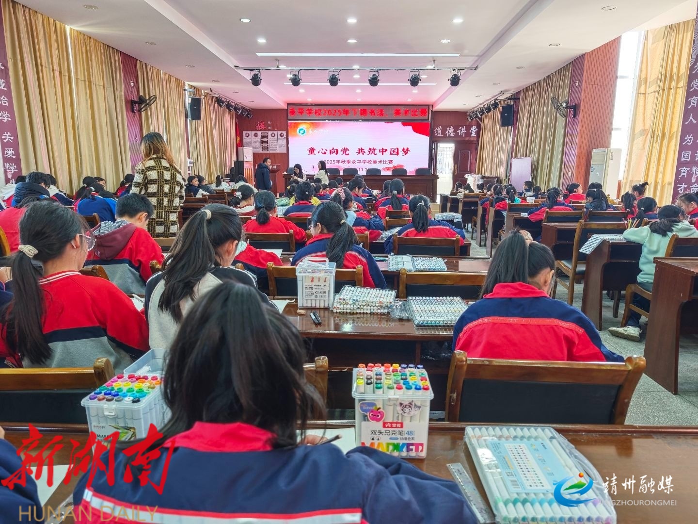 靖州融媒11月28日讯 (通讯员 李开慧 马译韩 莫林燕)11月28日,靖州苗族侗族自治县永平学校开展“童心向党 共筑中国梦”书法美术比赛。