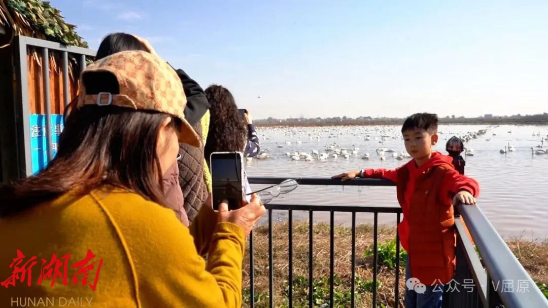 这样近距离的观赏体验,彻底打破了人们对候鸟遥不可及的固有印象。带着孩子初次到访的黄先生与儿子一同被眼前的景象深深吸引。“真没想到能这么近看到天鹅,它们比想象中要大得多!”黄先生兴奋地比划着。孩子也在一旁雀跃欢呼:“太喜欢这些大家伙啦!”