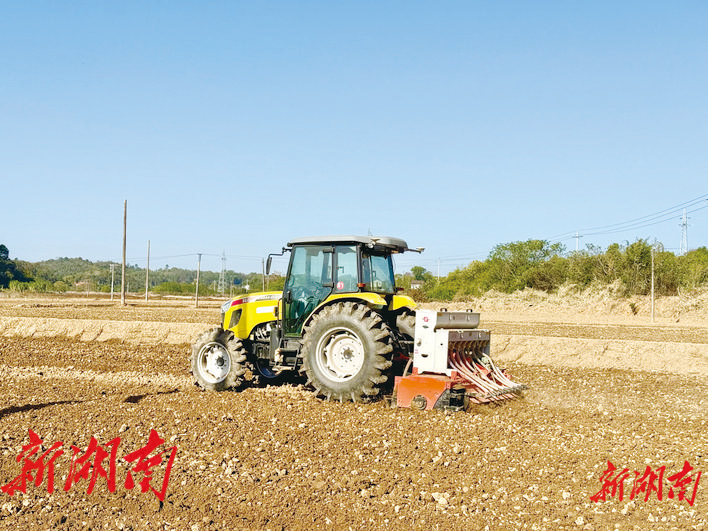 11月25日,株洲市天元区三门镇株木村高标准农田,一台无人驾驶拖拉机匀速行进,精准播下油菜种子。