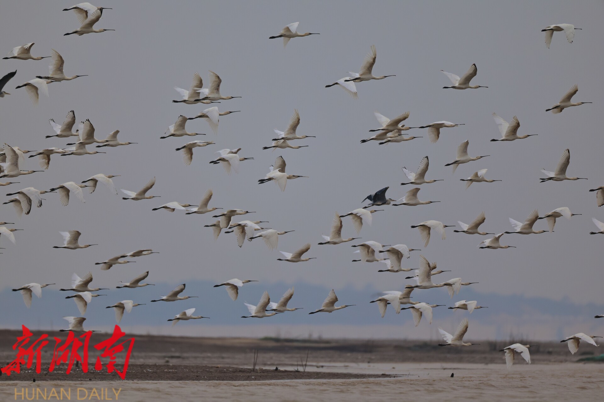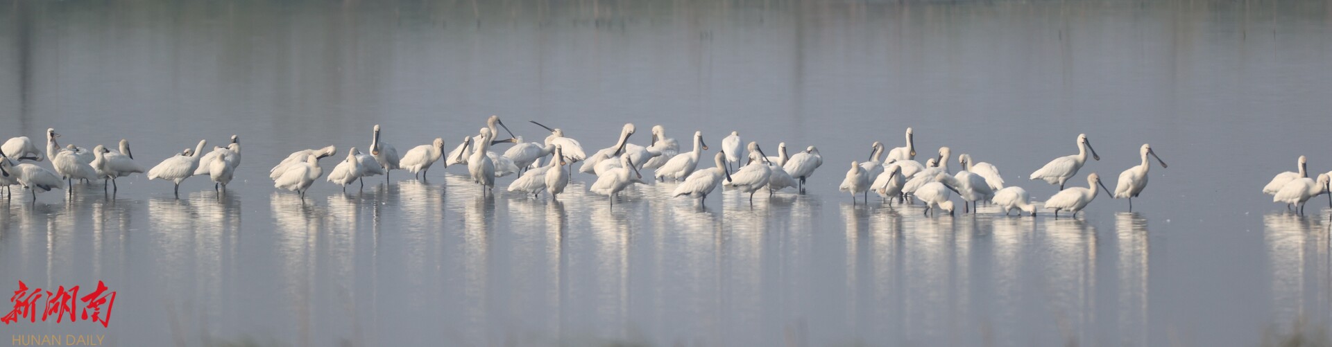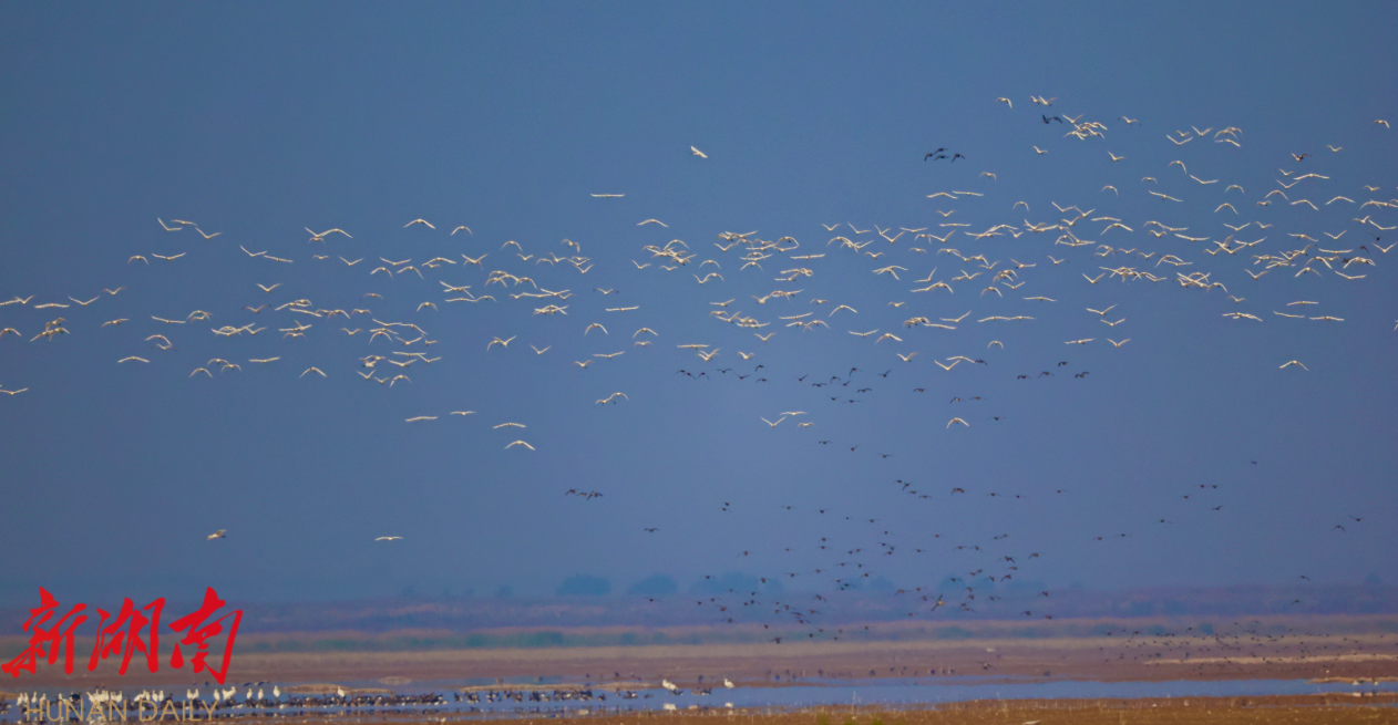 不懈的努力换来自然的丰厚回馈。央视镜头捕捉到了万鸟翔集的宏观场景,而巡护员的日常记录则留存下更多珍贵细节:中华秋沙鸭连续五年出现在同一水域,单身8年的麋鹿找到了俩个同伴,77只一级保护动物黑鹳罕见群聚,超过2100只白琵鹭翩然降临,江豚家族不时跃出水面……