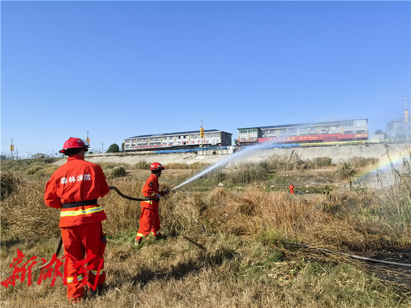 演练现场,模拟火情点浓烟四起,巡查人员发现后立即通过对讲机上报县防火指挥部,指挥部迅速启动应急预案,按照“分级响应、协同作战”机制,快速调度消防救援组、火情监测组、后勤保障组等专业力量赶赴现场。针对芦苇茎空易燃、火势蔓延快的特点,队员们重点处置芦苇堆垛等易复燃区域。经过40分钟协同作战,模拟火情被彻底扑灭,演练圆满完成。