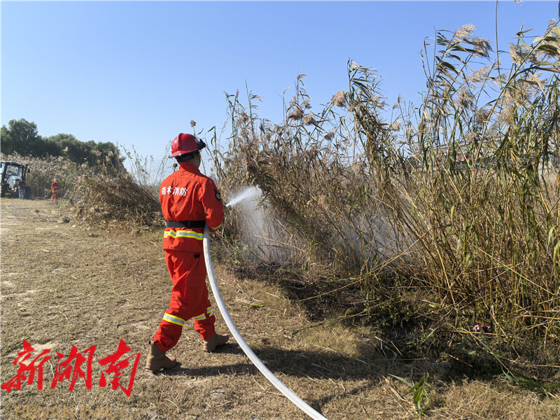 岳阳县开展东洞庭湖湿地芦苇防火实战演练