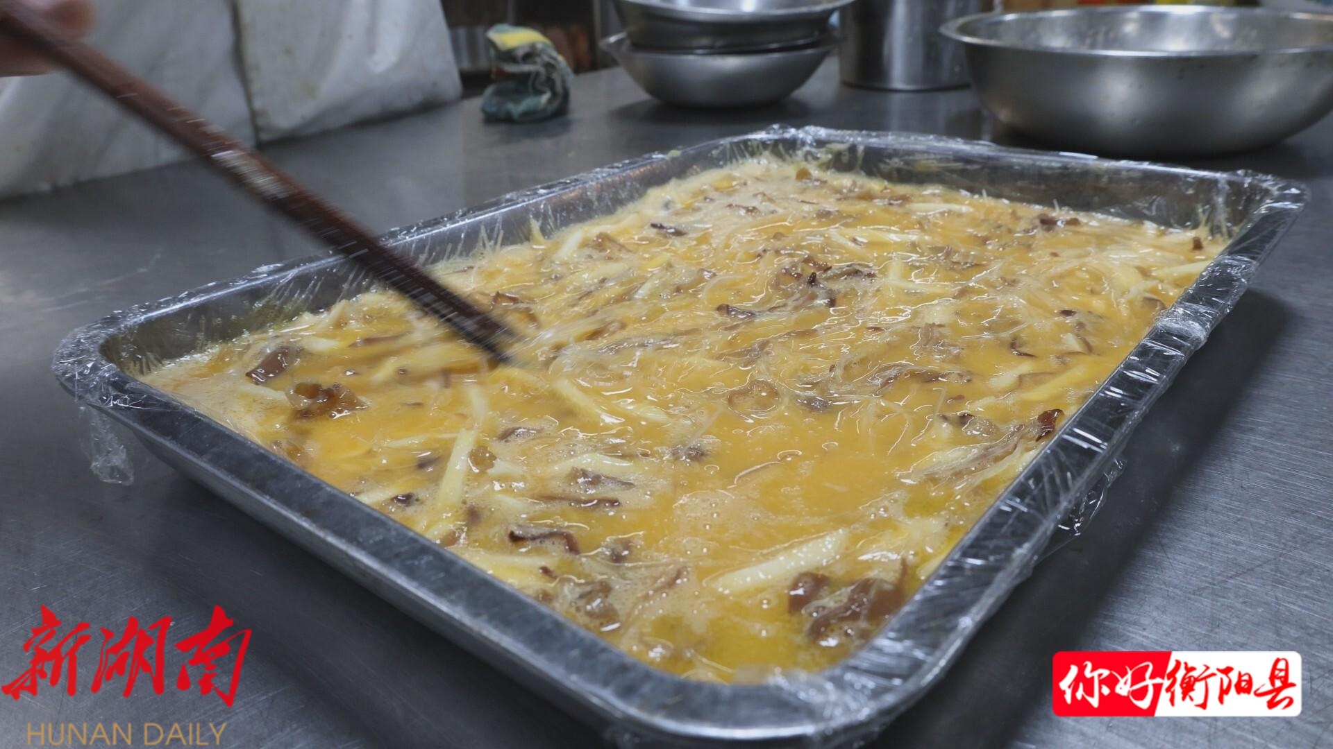 步入红灿园餐厅,宽敞明亮的环境与热情周到的服务让人倍感舒适。厨房里,厨师正专注烹制招牌菜“扒海蛋”:木耳焯水、五花肉煸香,调味后倒入蛋液,再与荸荠、粉丝一同搅拌均匀,覆膜定型,上锅蒸制约20分钟即可。这道菜的背后,藏着一个源自衡阳乡间的暖心传说——一位孝顺的媳妇,用家常鸭蛋与普通配料,巧妙模仿出海鲜的鲜美,不仅满足了长辈的心愿,更传递了浓浓的亲情与民间智慧。