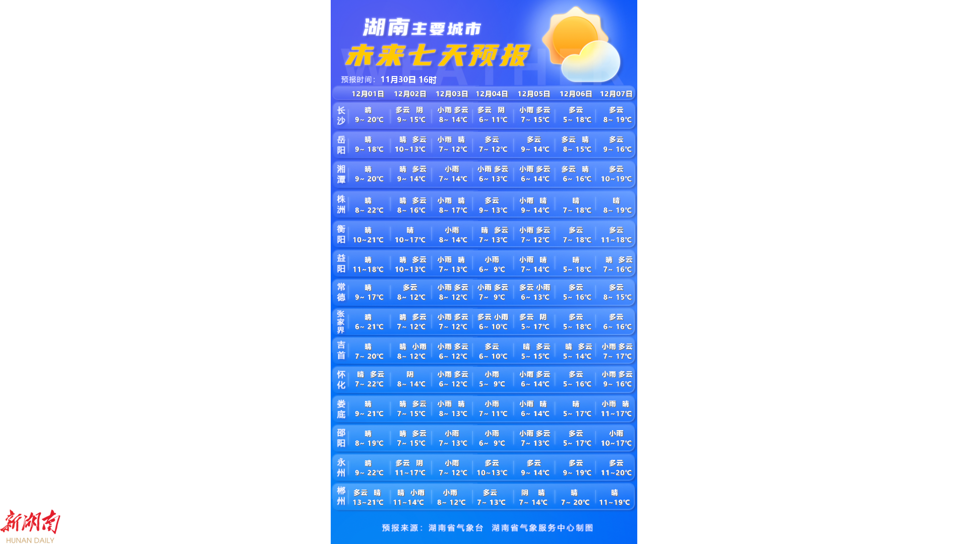 湖南最新天气预报
