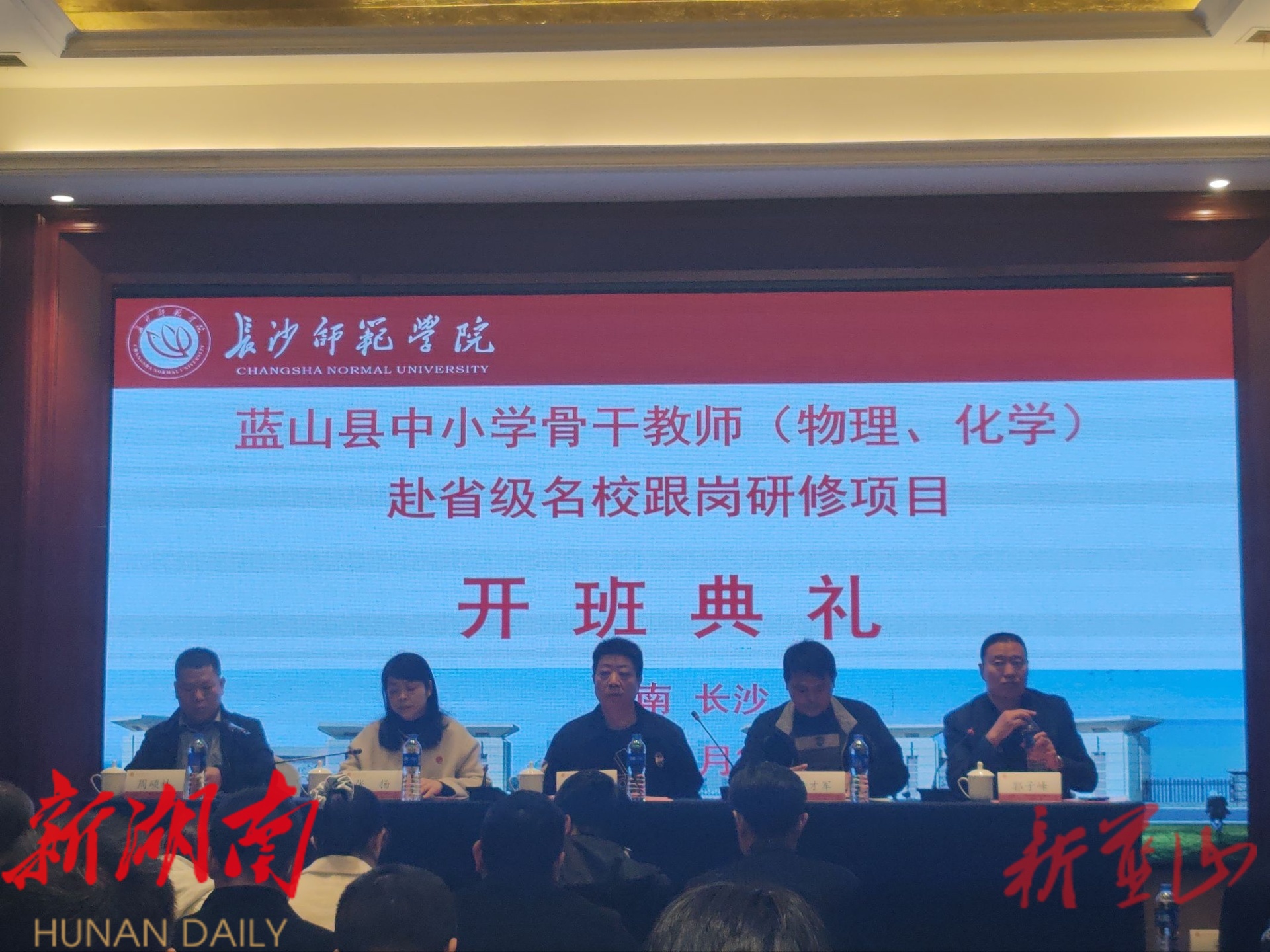 新蓝山客户端12月2日讯 (通讯员 李平 曾书 陈成羽 杨晋东)11月29日上午,蓝山县中小学骨干教师(物理、化学)赴省级名校跟岗研修项目开班典礼在长沙师范学院顺利举行。