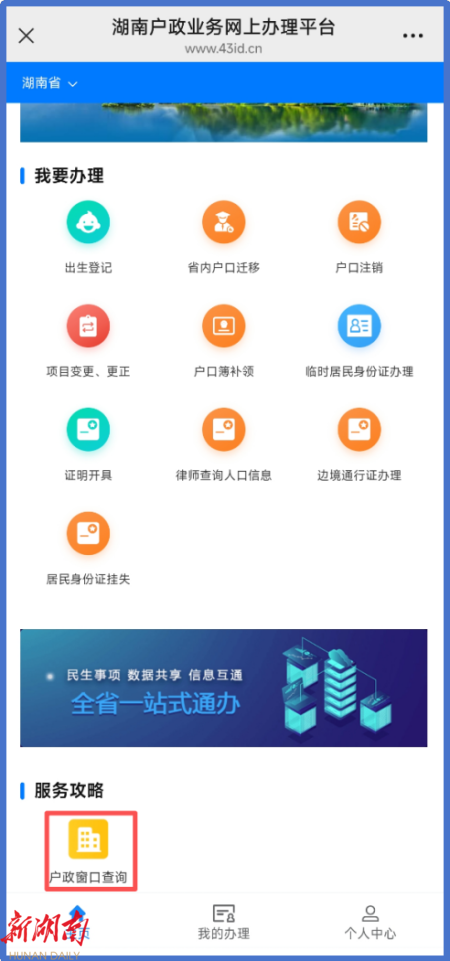 四、申请人在四项业务办理过程中,如需咨询相关问题, 可在工作日(9:00-12:00,13:00-17:00)致电0731-96305。或在湖南公安服务平台下方服务攻略中点击“户政窗口查询”,查找户籍地派出所电话进行咨询。