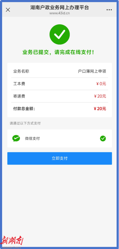 一、湘籍居民微信关注“湖南公安服务平台”公众号,注册并实人认证登录,点击“微警务”进入平台首页,在热点应用栏中选择“户口业务全程网办”;或者登录省政府“湘易办”APP首页,点击“户口业务”,进入湖南户政业务网上办理平台,在“我要办理”菜单中选择要申办的四项业务,填写相关信息,拍照上传证明材料,提交办件申请。