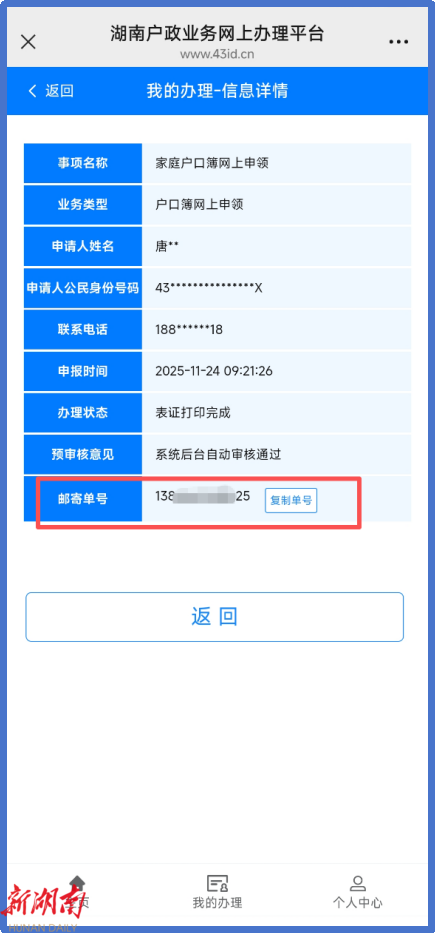 湖南省公安厅自2024年4月起分批推出44项户政业务全程网办服务以来,29万余名湘籍居民通过“一次不跑”的方式高效便捷的办理了户口业务。为顺应政务服务办理信息化、智能化发展趋势,进一步提升群众户政业务全程网办效率,自2025年12月1日起,省公安厅新增推出四项 网办业务智能化办理服务举措 ,即: 湘籍居民网上办理户口簿补领、户籍证明、户口登记项目变更更正证明、曾经同户人员亲属关系证明四项户政业务 ,实现当日提交,当日办结邮寄。