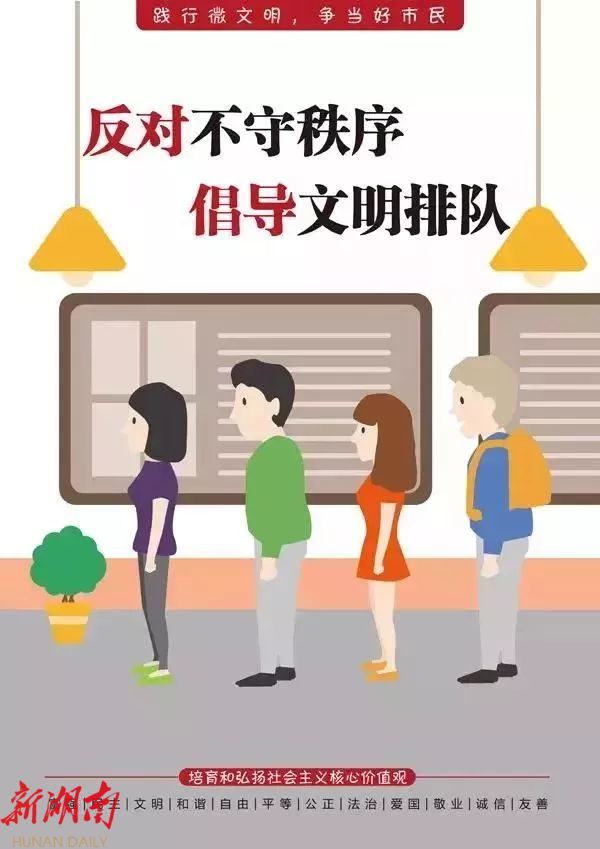 排队象征着秩序,秩序展示社会文明。办事排队,看似一件小事,但是我们要从小事做起,从一点一滴做起,带动身边的人,养成在公共场合自觉排队的好习惯。