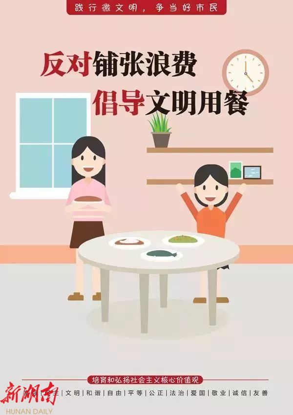 小餐桌,大文明。餐桌文明是社会文明的重要体现,传承着中华民族的优秀文化和尊重劳动、珍惜粮食、勤俭节约的传统美德。粒米虽小君莫扔,勤俭节约留美名。光盘行动,从我做起。
