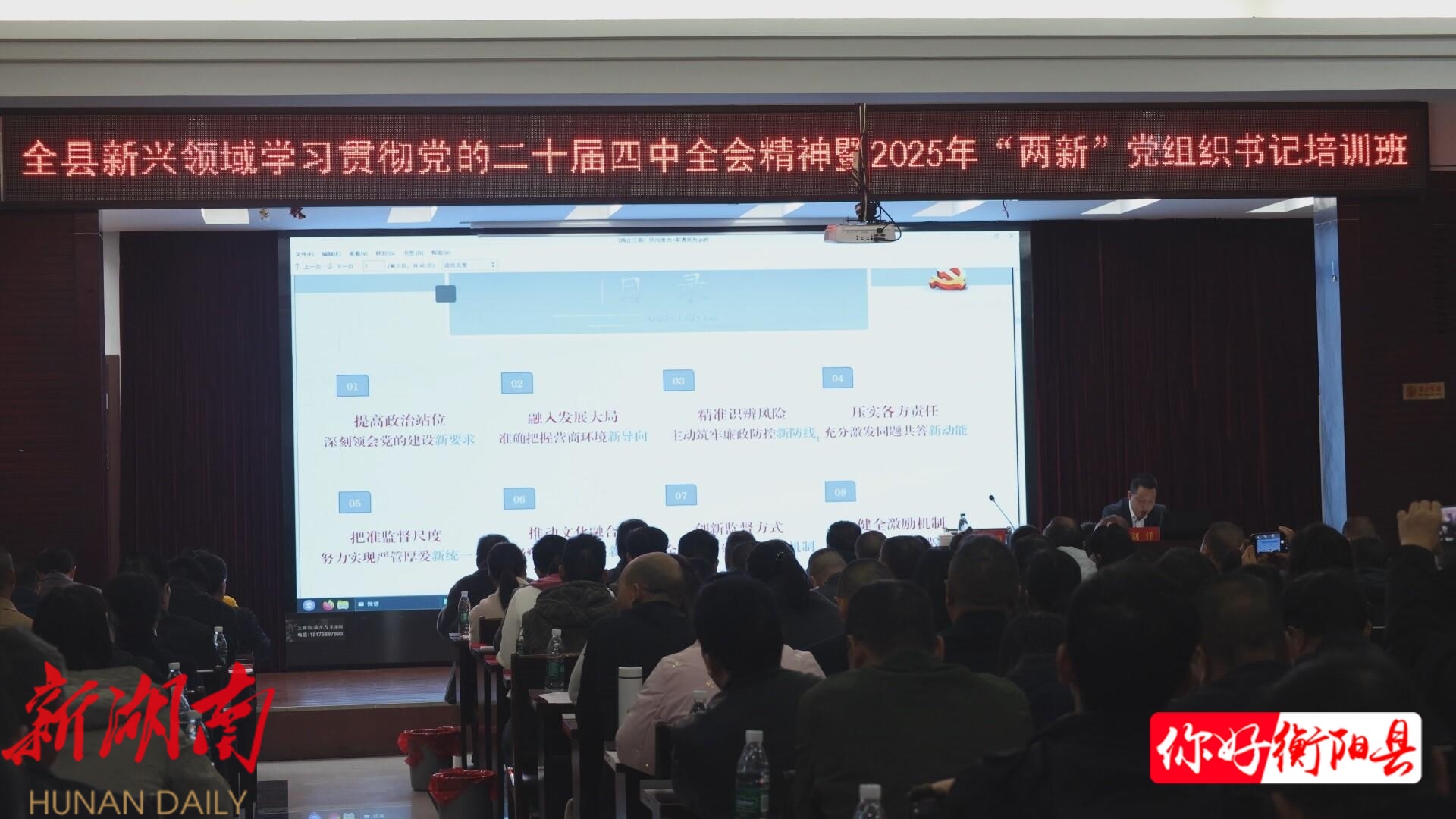 衡阳县融媒12月2日讯(记者:姚康 廖辉煌 ) 12月2日,全县新兴领域学习贯彻党的二十届四中全会精神暨2025年“两新”党组织书记培训班开班,来自我县新兴领域160余名党组织书记集中参训,通过系统学习提升党务工作能力与服务发展实效,助力全县“两新”组织党建工作提质增效、再上新台阶。