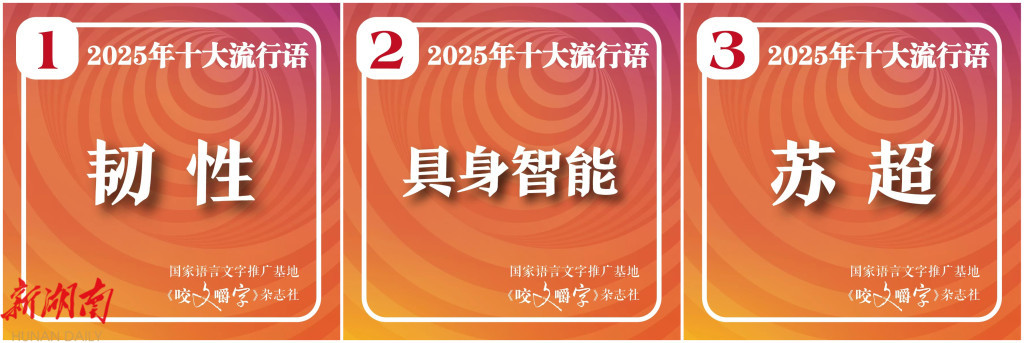 《咬文嚼字》主编黄安靖表示,编辑部沿袭一贯的“双标准”原则,即坚持社会学和语言学评选标准。“韧性”位居榜首,“苏超”“赛博对账”也高票入选,这说明这一年度的大事要事、社会热点,都得到了社会的广泛关注。