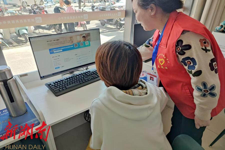 工作人员指导办事群众网上办
