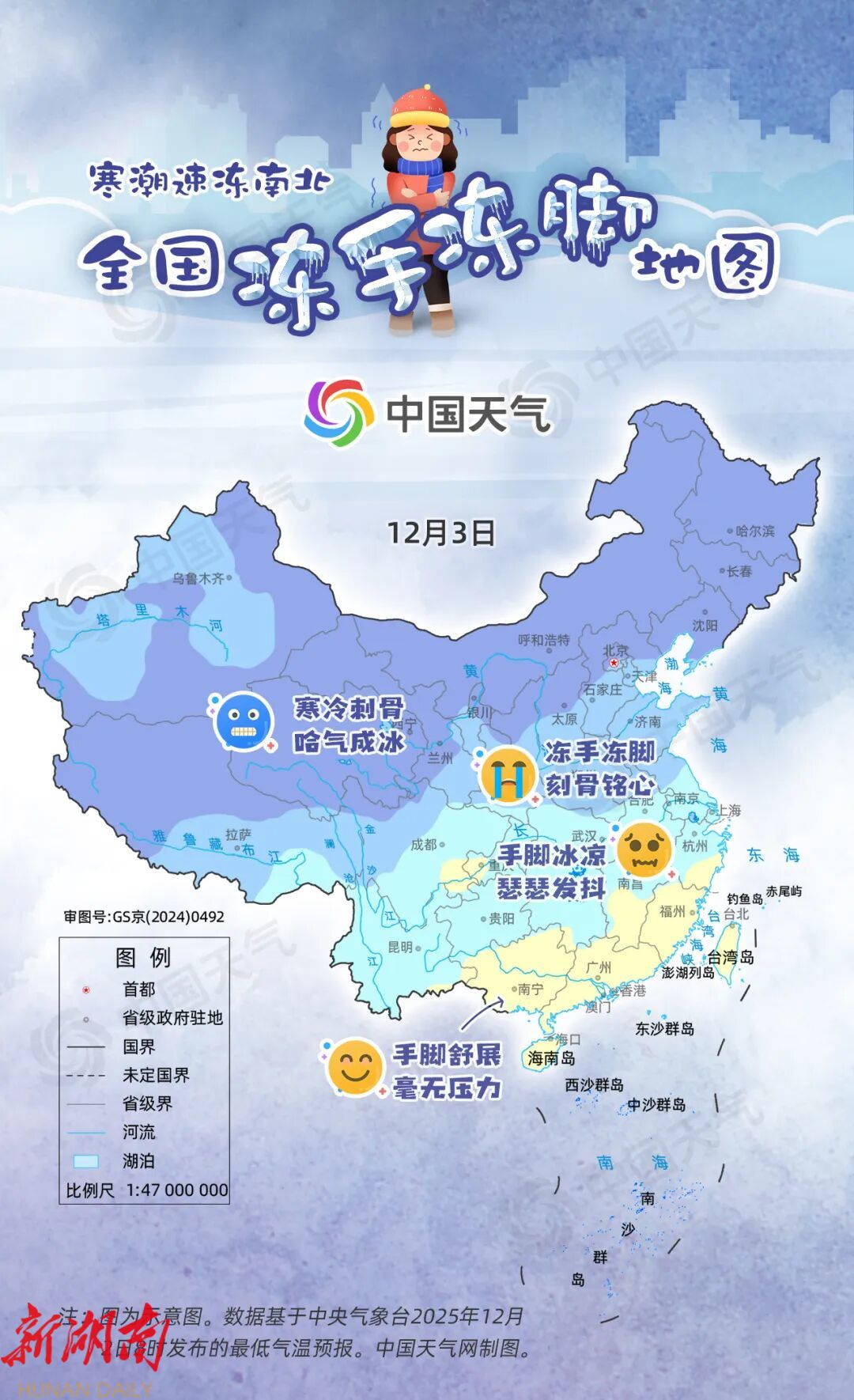眼下,一场寒潮正席卷我国大部地区,所到之处气温骤降。今明两天(12月2日至3日),中东部多地将陆续迎来今年下半年来最冷时段,最低气温0℃线不断南压。究竟哪里冻到“彻骨寒”,哪里冷到“不出手”?