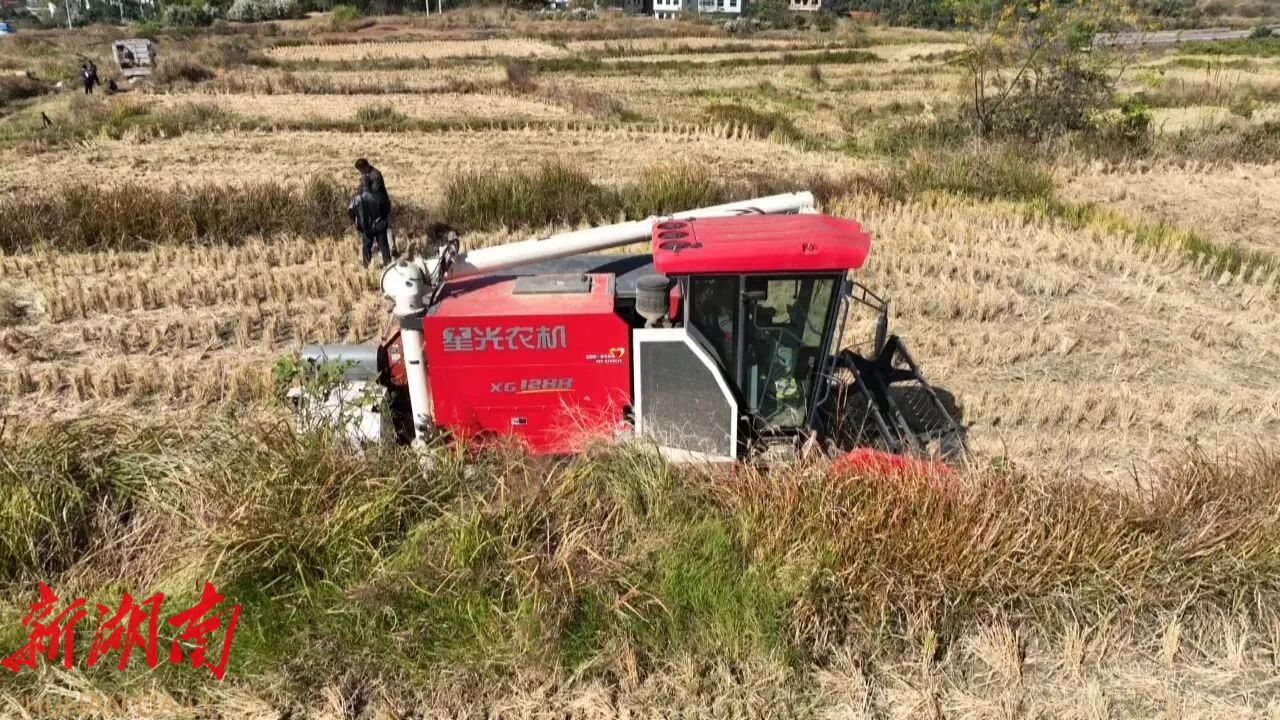 在珠泉镇爻山村,成片晚稻已经在10月底收割完成,11月26日,全县首台全喂入收割打捆一体机正在田间来回穿梭。每隔几分钟,机器尾部就会滚落一个圆柱形的草捆,直径达半米,重量在60到80斤之间。这台设备的主人是珠泉镇种粮大户曾利平。曾利平去年试种500亩水稻喜获丰收,今年他一口气在珠泉、坦坪、袁家三镇流转了3000多亩土地,有的实行烟稻轮作,有的种上了双季稻。水稻种植面积成倍增长,秸秆处理量也大大增加。