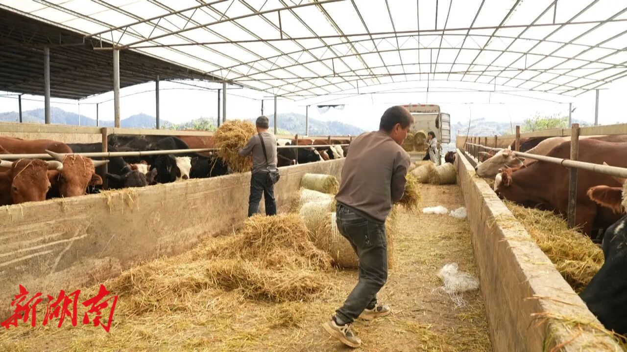 曾利平算了一笔经济账,自己养了300多头牛,以往光是购买青贮饲料,每年就要花20多万块钱。今年他将打捆好的秸秆运回养殖场,一拆网兜,牛群就会循着香味过来吃,饲料费用全部省下了。同时,对于购买农机和低茬收割打捆,相关部门还有补贴。