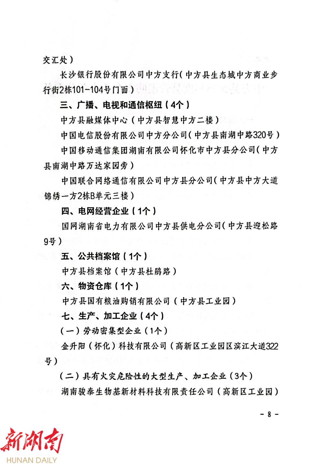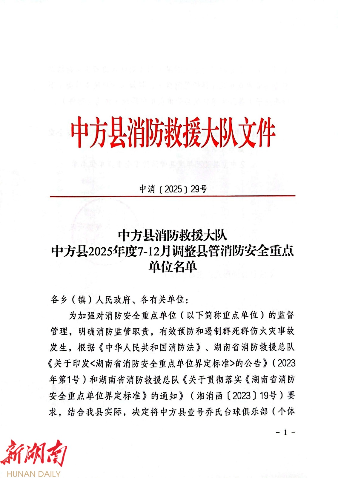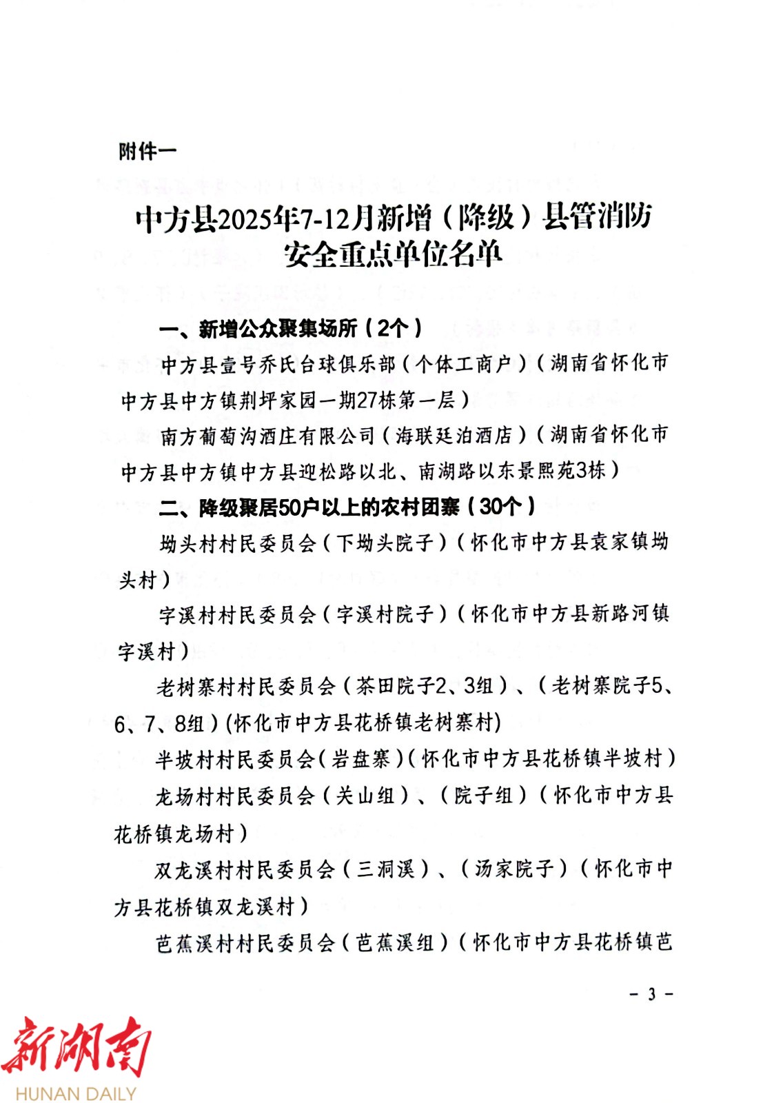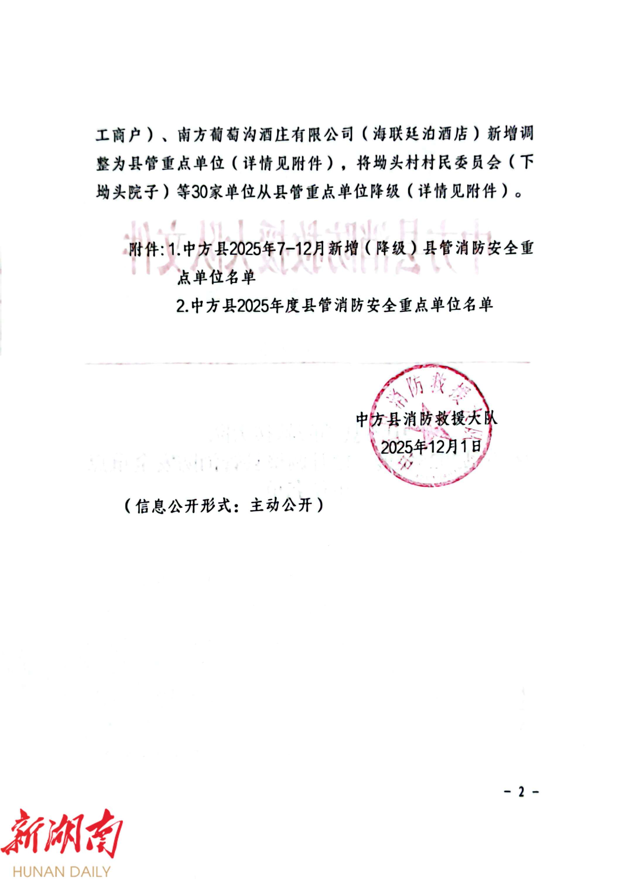 中方县消防救援大队2025年度调整县管消防安全重点单位名单