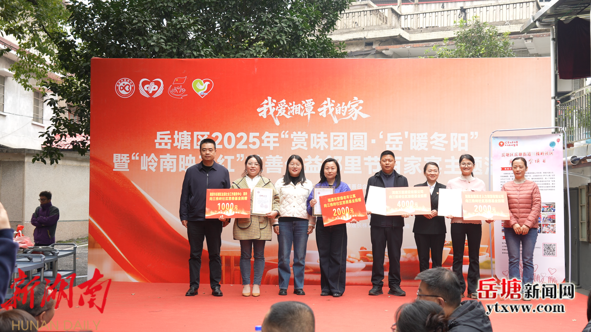 “本次活动是岳塘区2025年‘我爱湘潭我的家’群众性精神文明建设第四季度主题示范活动,即岳塘区‘赏味团圆’冬季主题示范活动的一环。活动依托社区‘岭南映三红’公益项目,旨在搭建居民沟通桥梁,增进邻里情谊,营造邻里和睦、互帮互助的和谐氛围。同时宣传慈善公益理念,丰富居民精神文化生活,让大家在参与中感受社区温暖与公益力量,提升幸福感与归属感。”岳塘区委宣传部相关负责人表示,下一步,岳塘区将持续以群众需求为导向,把邻里节等活动与基层治理、移风易俗、消费促进深度融合,不断搭建居民沟通桥梁,增进邻里情谊,广泛宣传慈善公益理念,丰富居民精神文化生活,让邻里和睦、互帮互助的氛围愈发浓厚,让文明新风尚在社区落地生根。