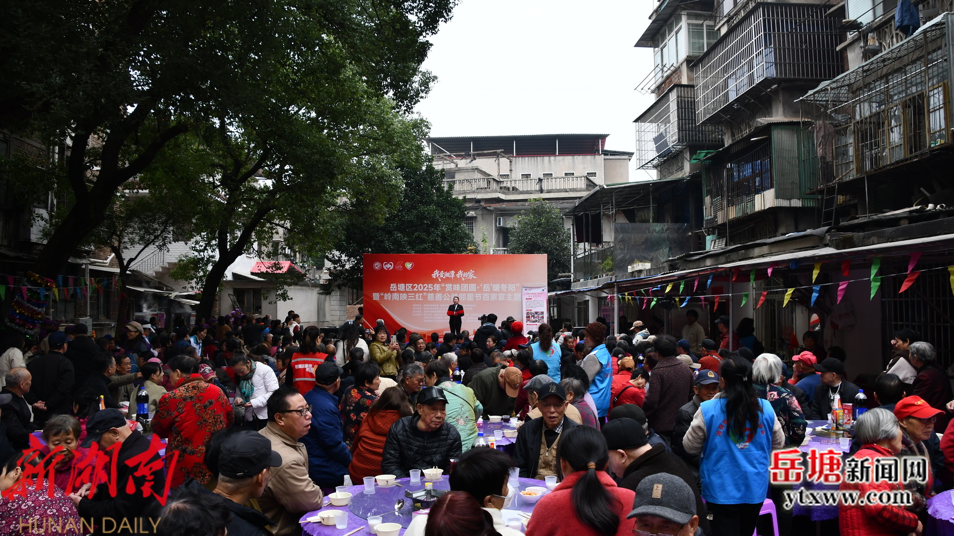 岳塘融媒12月2日讯 (通讯员 张孟成) 12月2日,“我爱湘潭我的家”岳塘区2025年“赏味团圆·‘岳’暖冬阳”暨“岭南映三红”慈善公益邻里节百家宴主题活动在岳塘区三株岭社区新二村巷举行。岳塘 区委常委、宣传部部长杨欣荣出席活动 。近400 名 居民欢聚一堂,共享美味佳肴、共赏文艺演出、共话邻里温情,以舌尖上的团圆味,绘就“我爱湘潭我的家”的幸福画卷。
